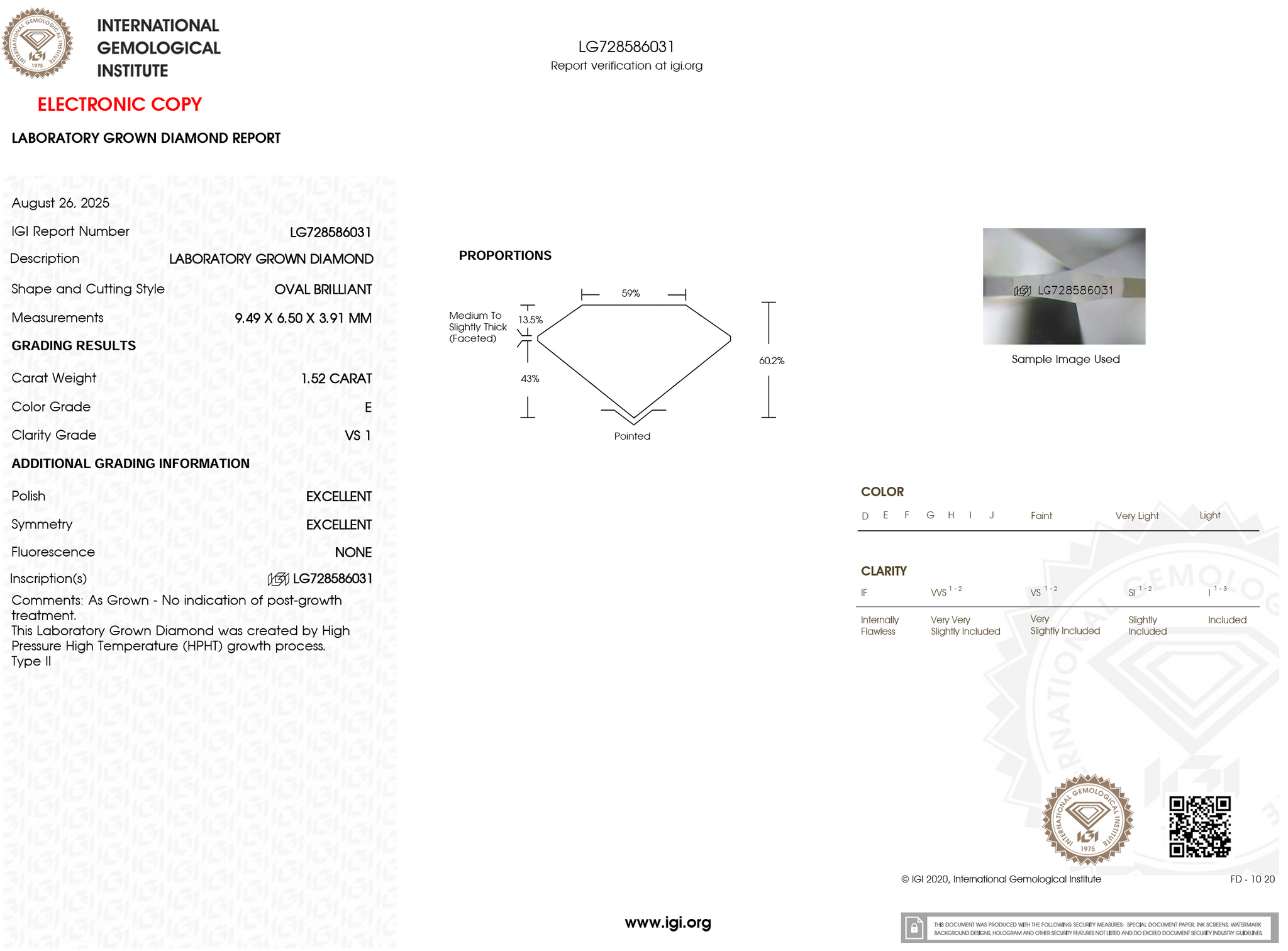 1.52 Carat E-VS1 Oval Lab Grown Diamond - IGI (#121510)