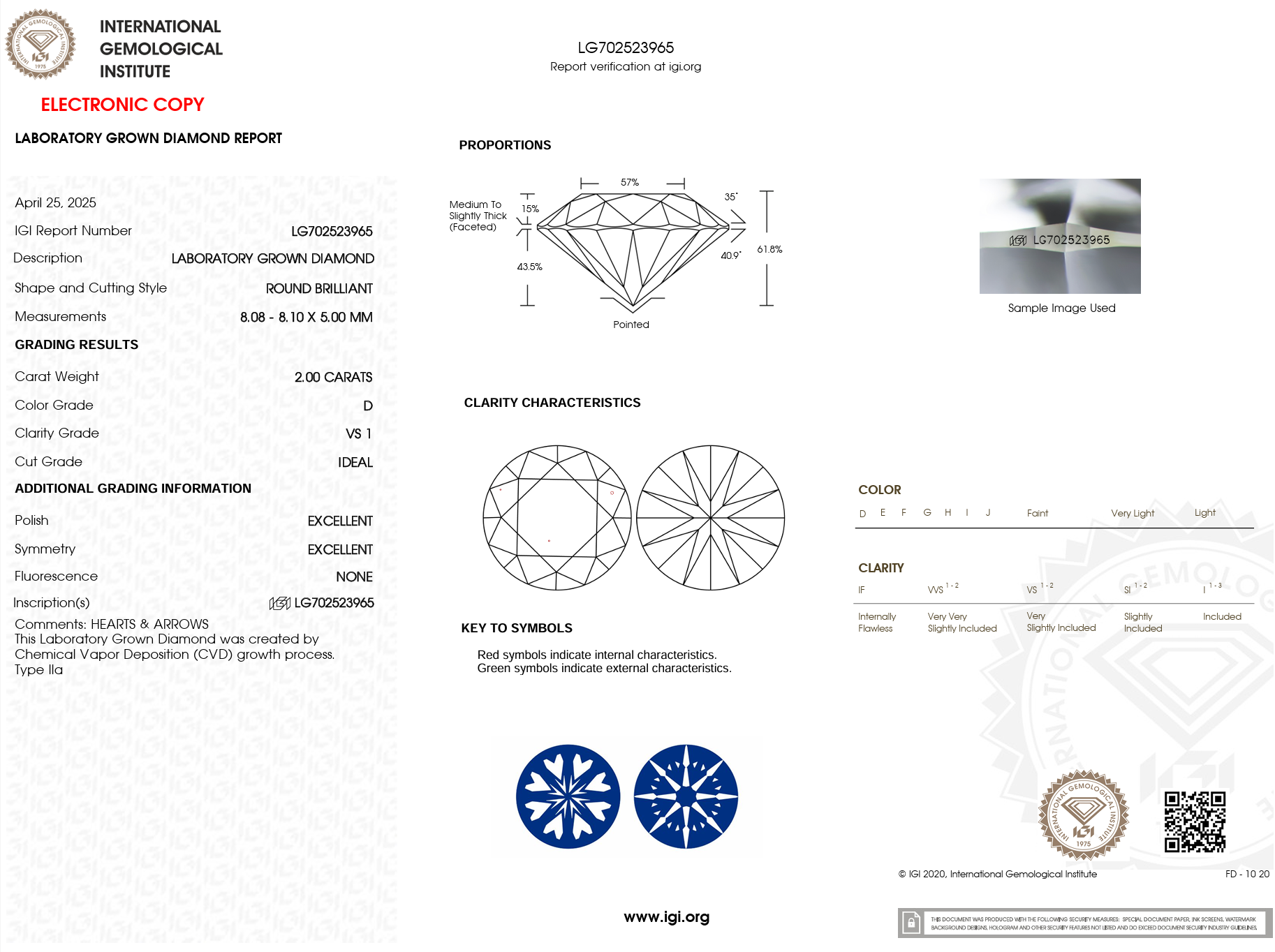 Cut: Ideal Polish: Excellent Symmetry: Excellent