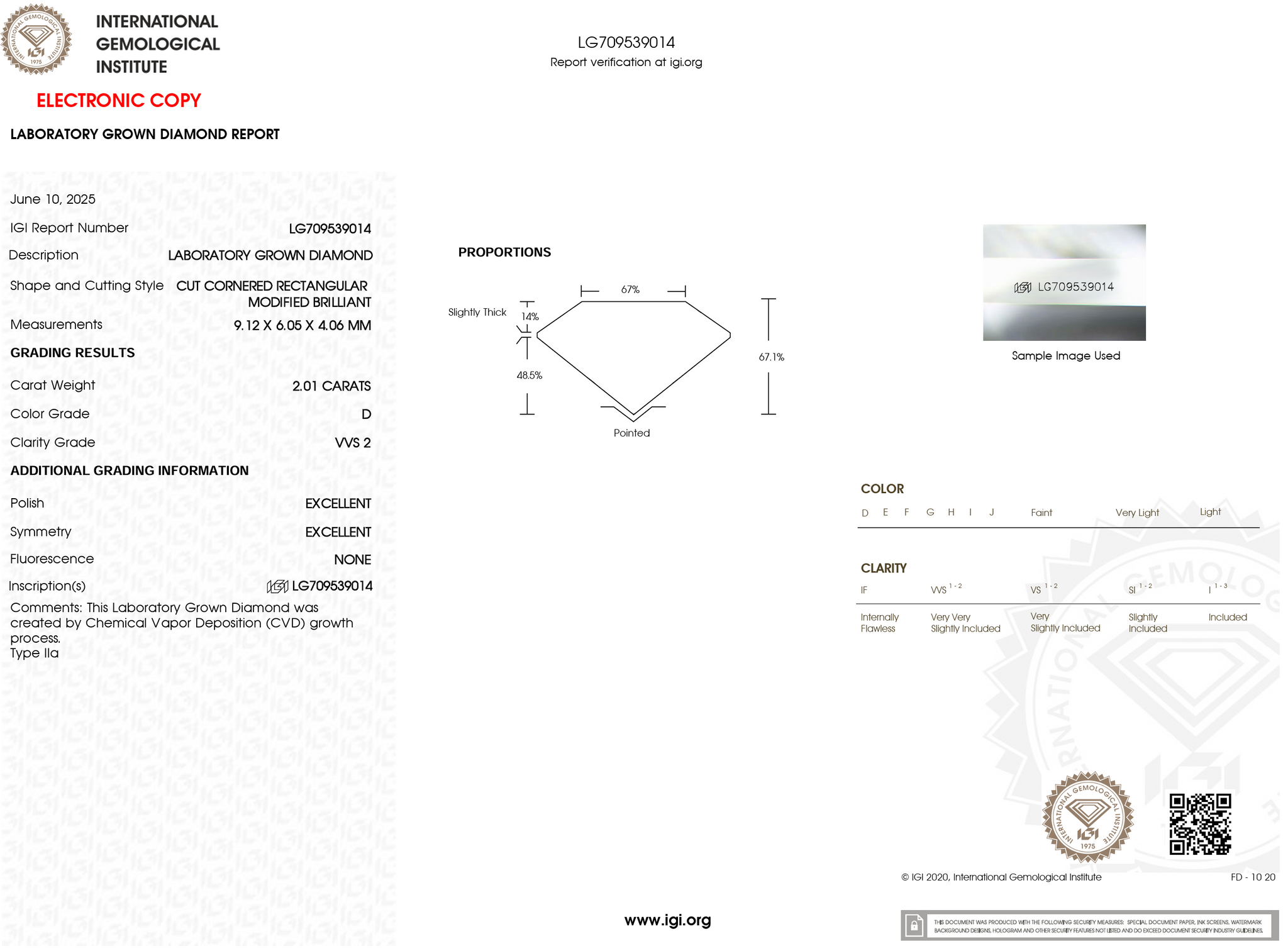 2.01 Carat D-VVS2 Radiant Lab Grown Diamond - IGI (#121328)