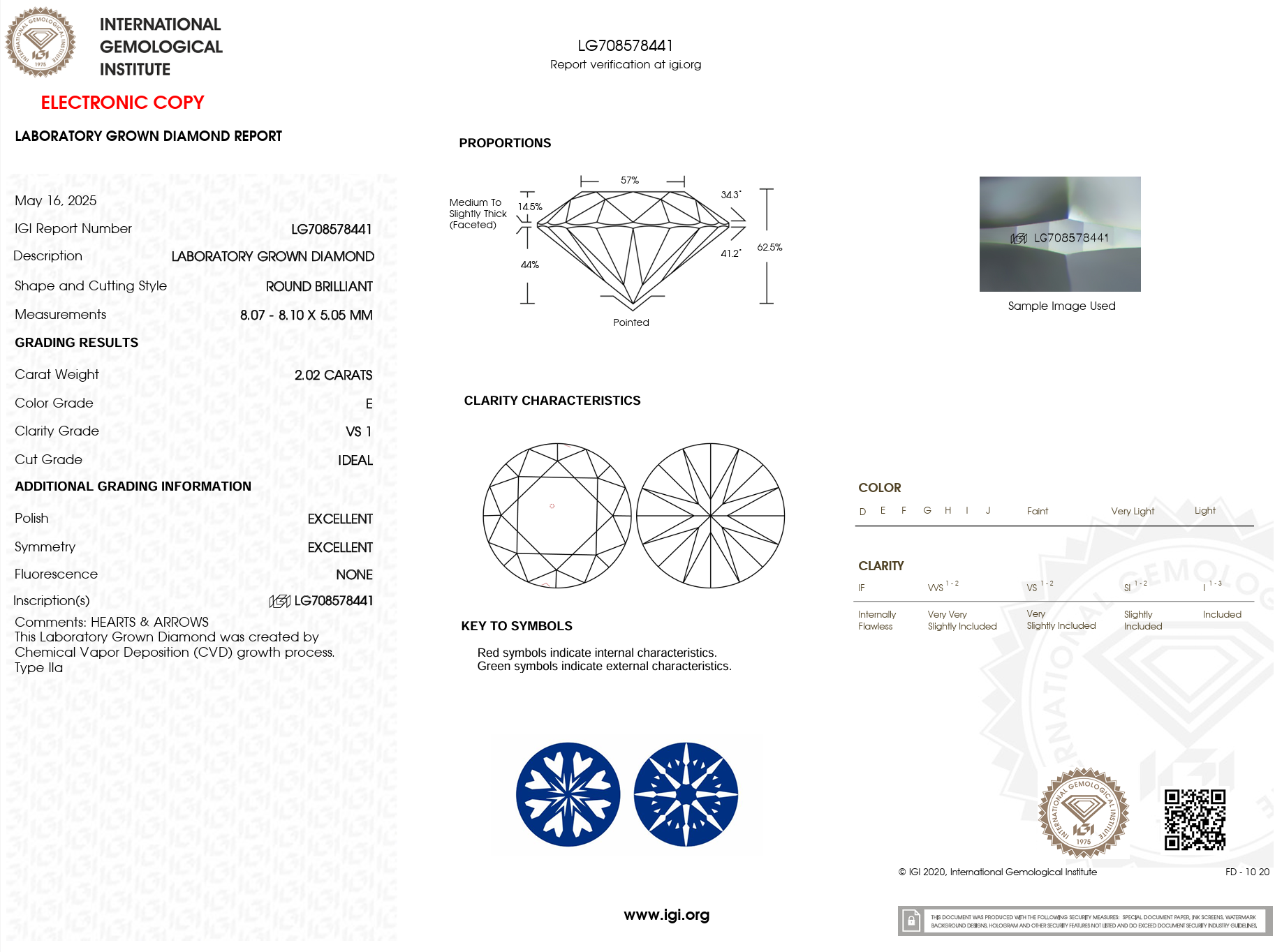 Cut: Ideal Polish: Excellent Symmetry: Excellent