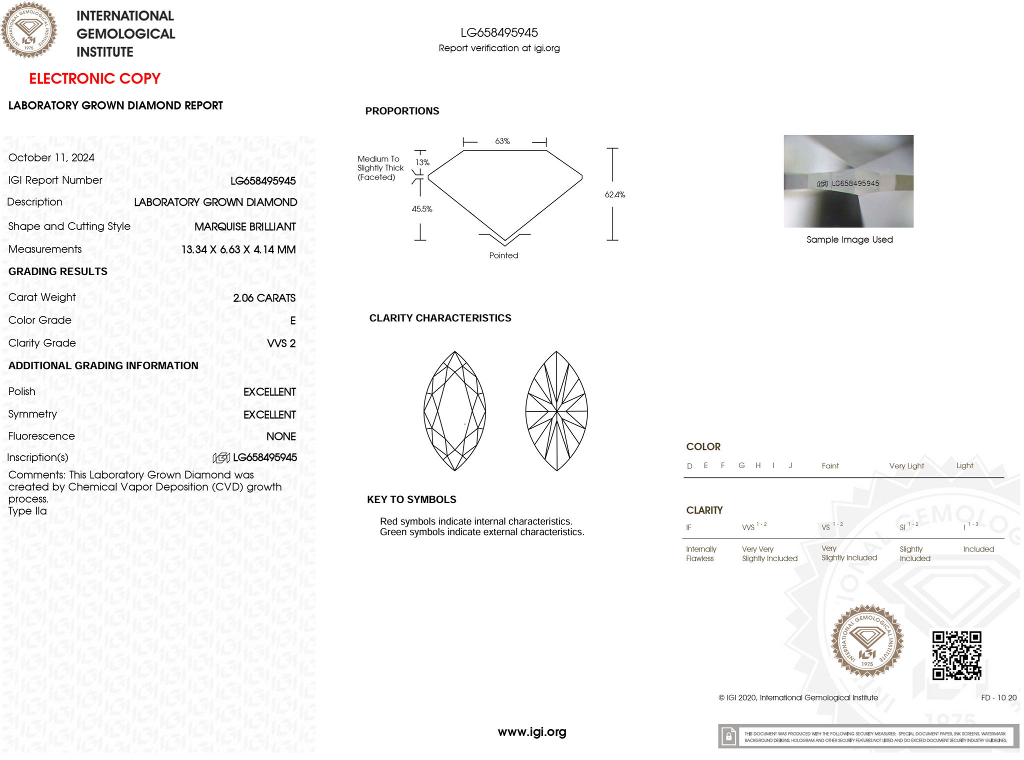 2.06 Carat E-VVS2 Marquise Lab Grown Diamond - IGI (#122206)