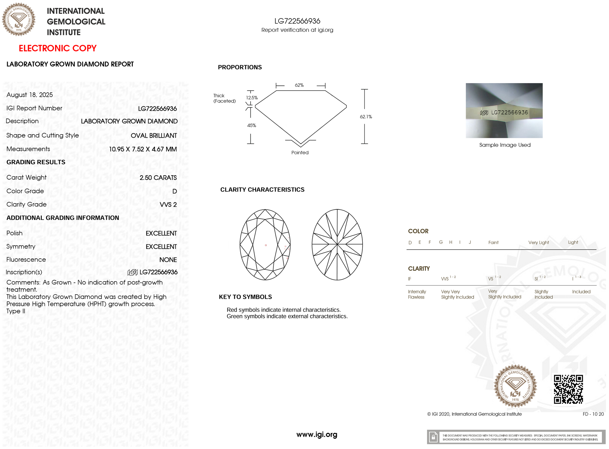2.50 Carat D-VVS2 Oval Lab Grown Diamond - IGI (#121509)