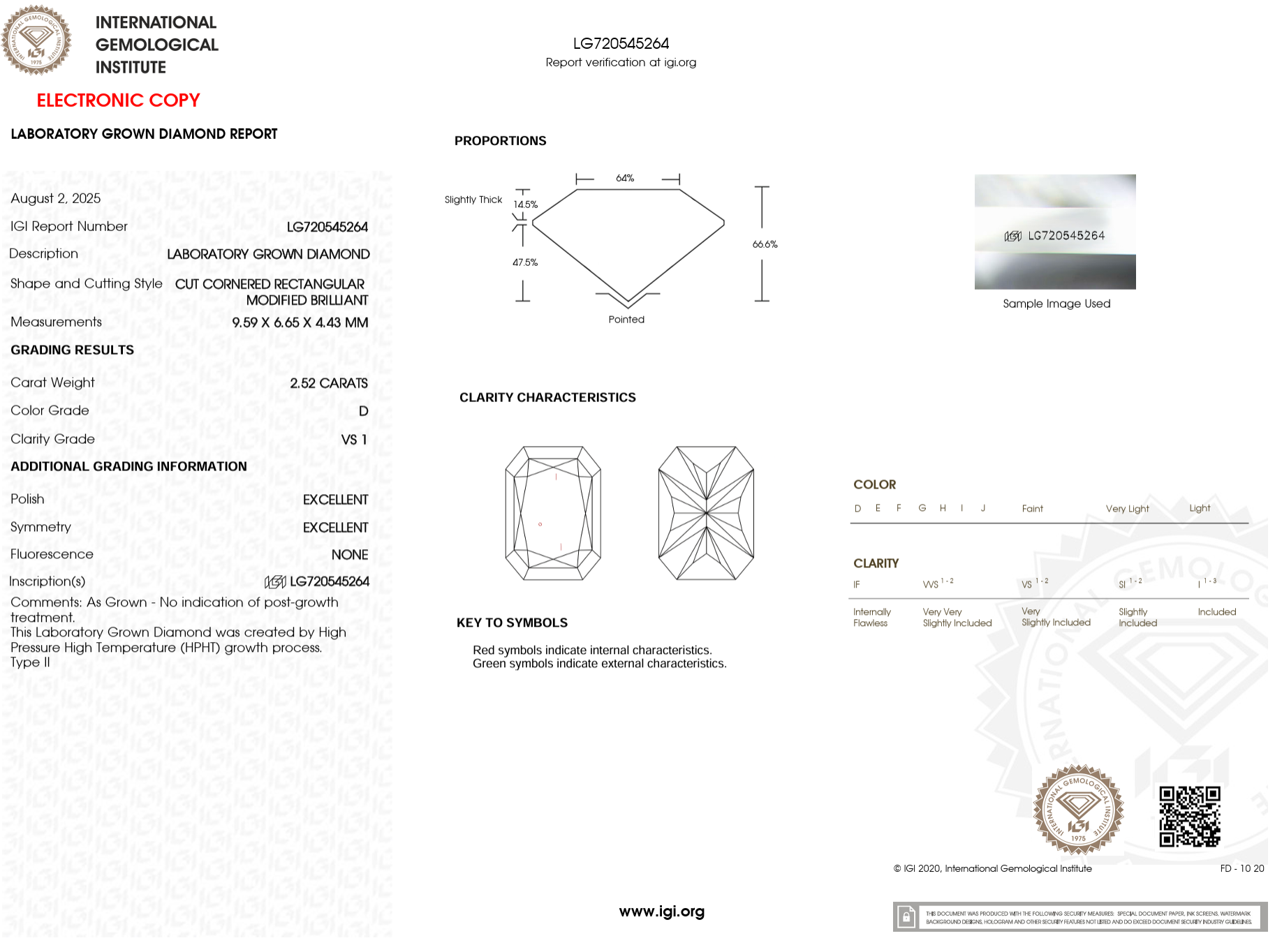 2.52 Carat D-VS1 Radiant Lab Grown Diamond - IGI (#121800)