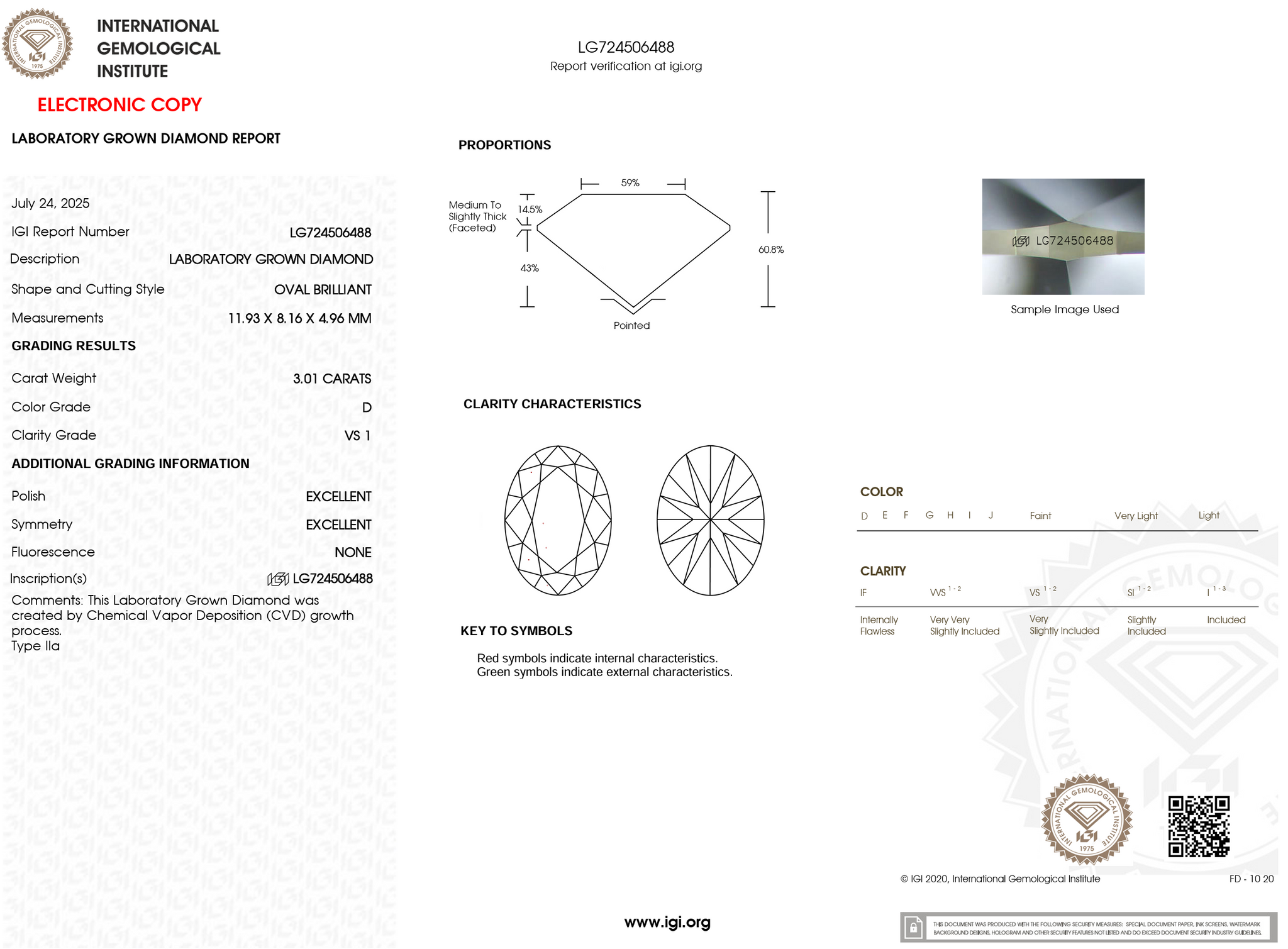 3.01 Carat D-VS1 Oval Lab Grown Diamond - IGI (#121434)
