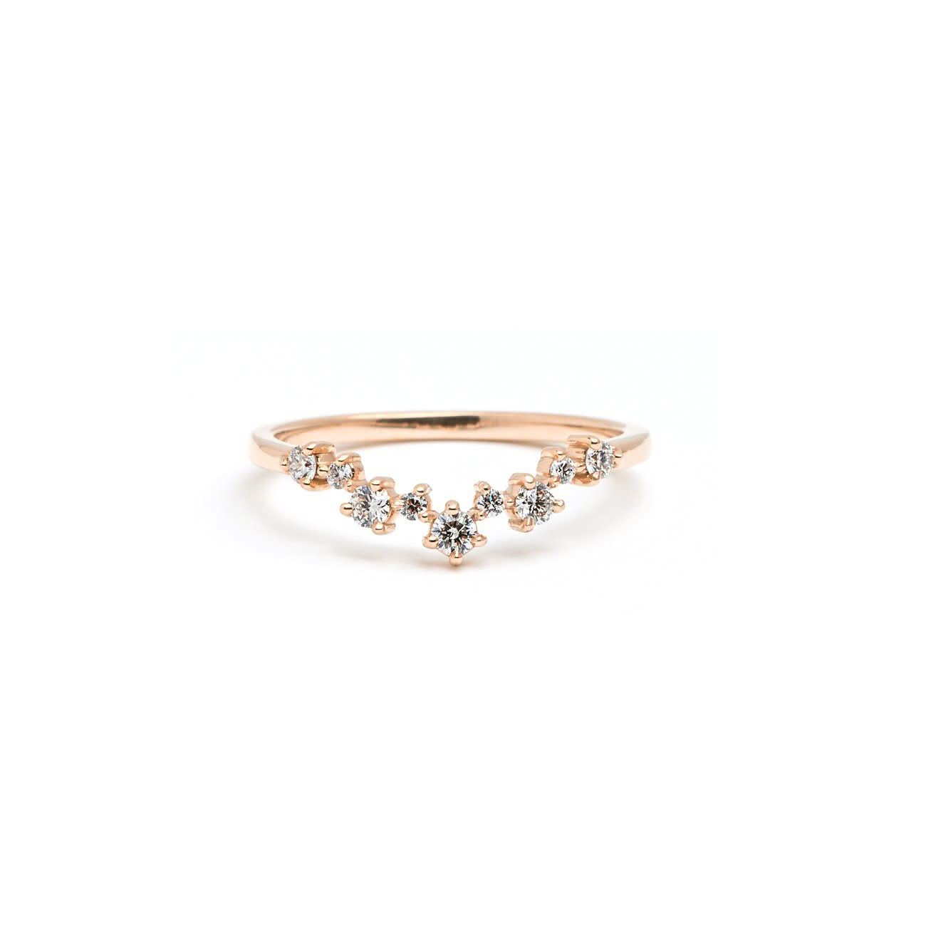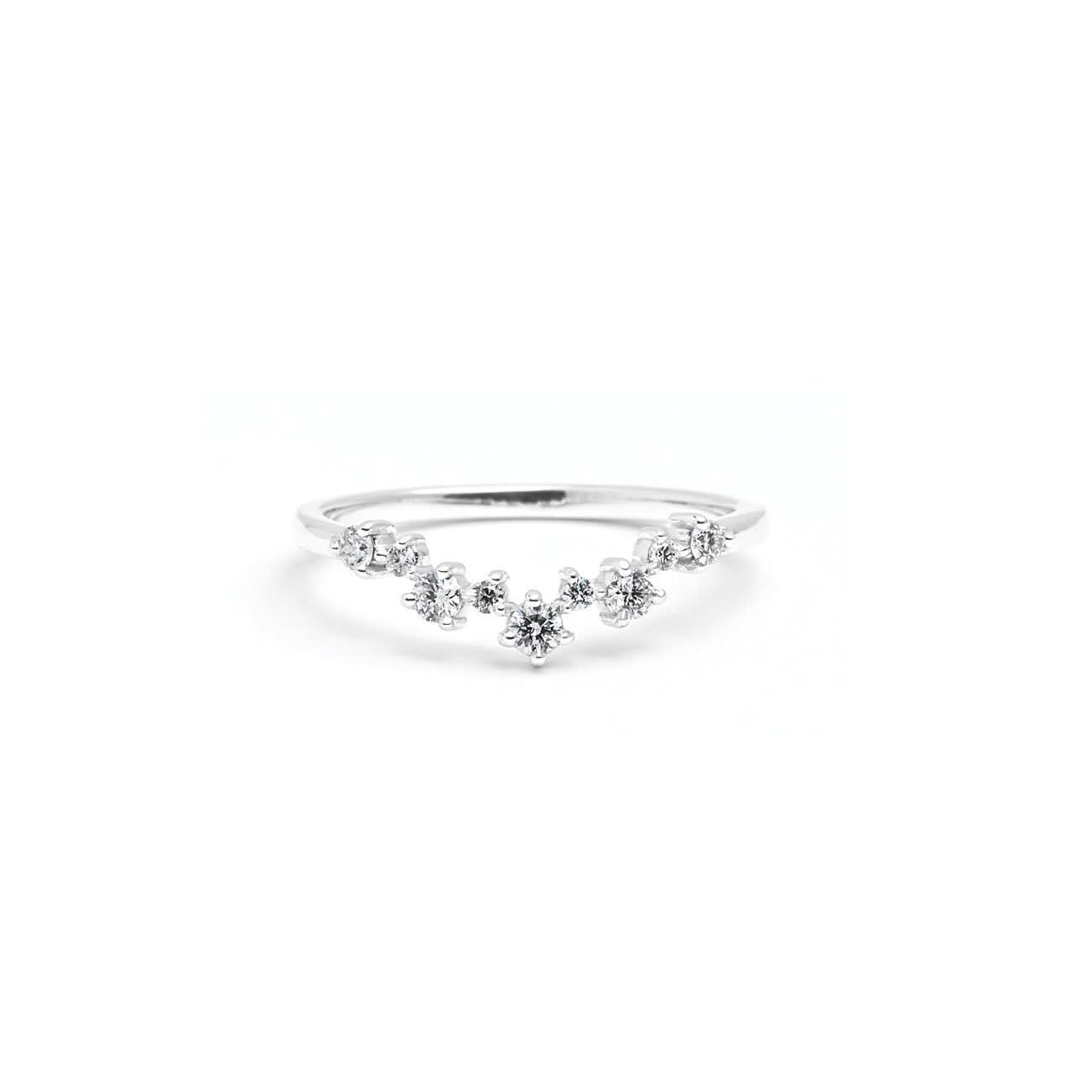 The Constellation Wedding Band is a timeless and elegant piece that features sparkling diamonds set in a beautiful constellation design. The delicate chevron ring style is crafted in high-quality metals and is perfect for everyday wear or special occasions. This ring is a stunning addition to any jewelry collection.