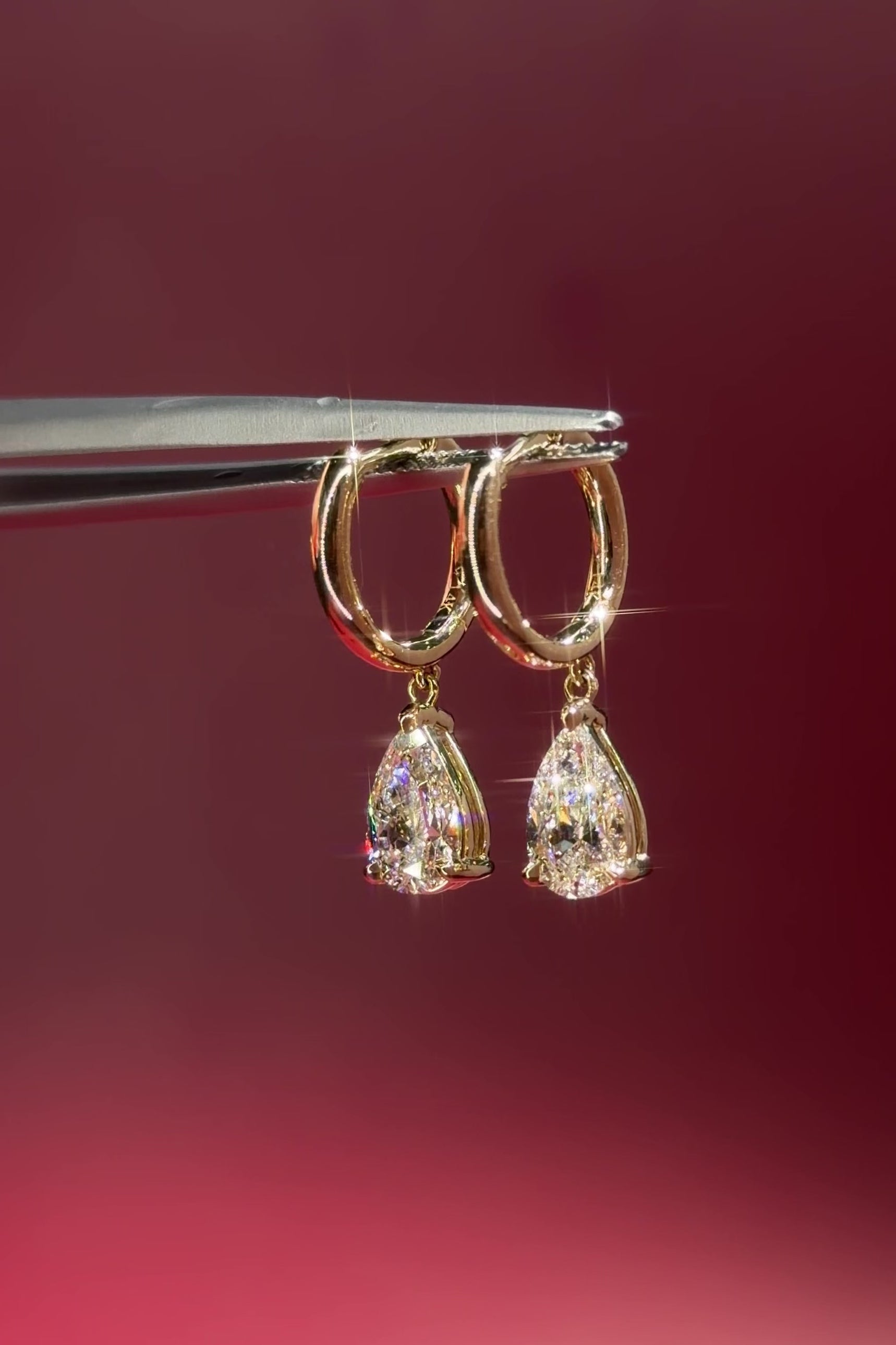 2ct Pear Drop High Polish Hoops Yellow Gold