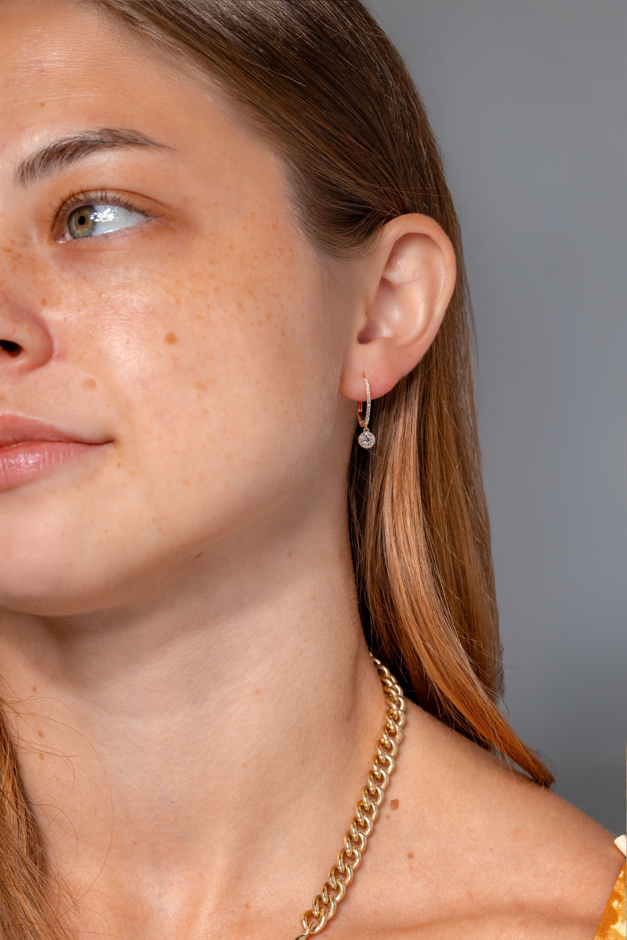 Shimmering with timeless elegance, these huggie earrings are crafted in 14k gold and adorned with a radiant 0.30ct natural diamond halo. Designed to hug the ear with effortless sophistication, they’re the perfect balance of everyday luxury and evening sparkle.
