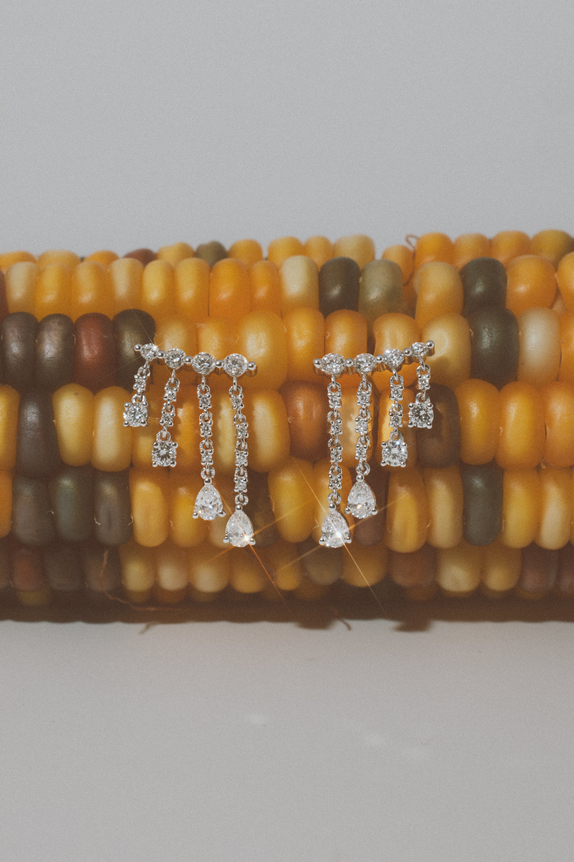 Bold yet refined, the Sarah Earrings radiate brilliance with a cascading drip design. Crafted in 14k white gold, they feature approximately 0.71cttw of sparkling round diamonds and 0.40–0.46cttw of elegant pear-shaped diamonds, all graded F+ SI+ for exceptional sparkle. Finished with secure medium push-back closures, these earrings are a true statement piece designed to dazzle from every angle.