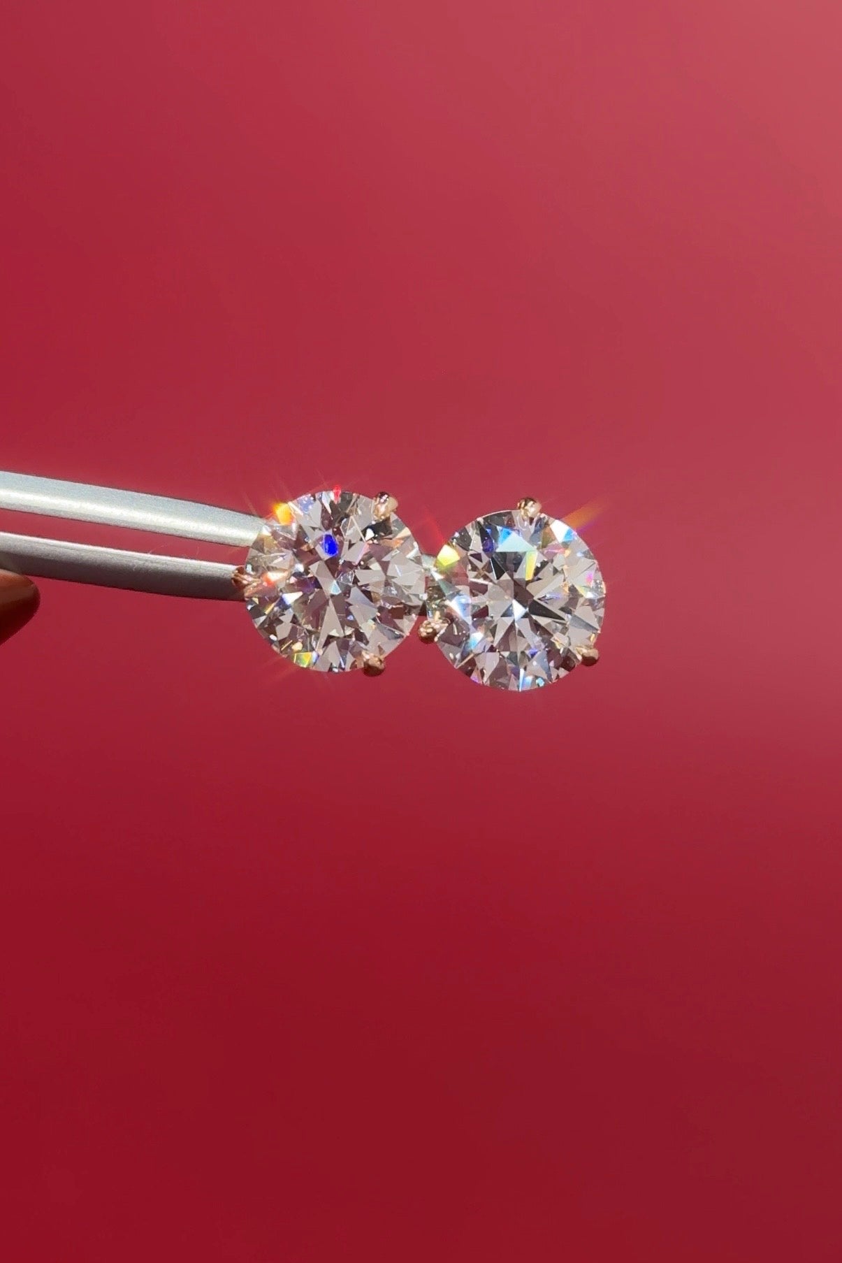Simple, secure, and stunning. These 4.02ct Core Round Lab Diamond Studs feature bright white lab-grown diamonds set in a sleek 3-prong martini setting for a floating look. Crafted in solid 14k yellow gold and secured with screw-back posts, they’re made to stay in—perfect for everyday wear with lasting brilliance.