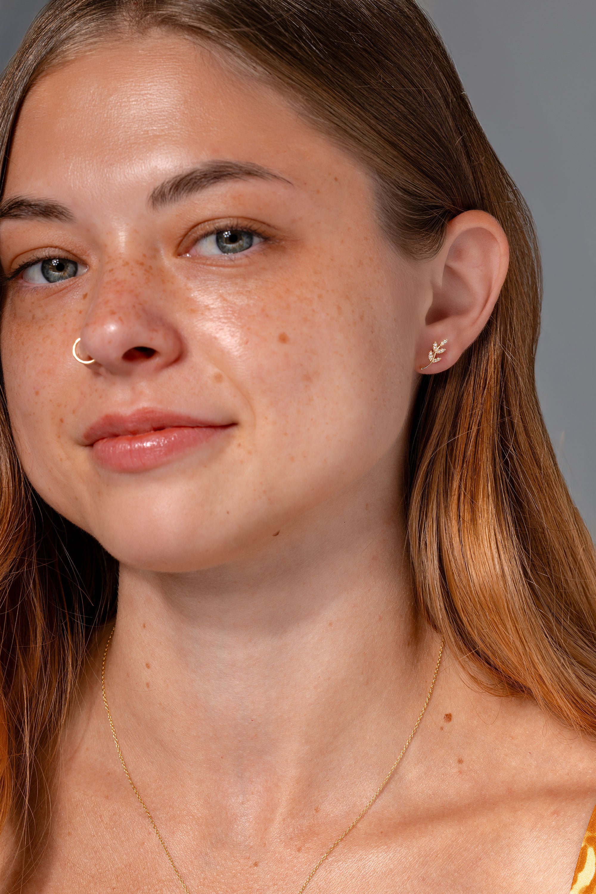 Delicately designed to resemble a graceful branch, these earrings are crafted in 14k yellow gold and set with 0.06ct of natural diamonds. Their organic shape and subtle sparkle make them perfect for everyday wear, adding a touch of nature-inspired elegance to any look. Secured with classic push-back closures for comfortable, effortless style.
