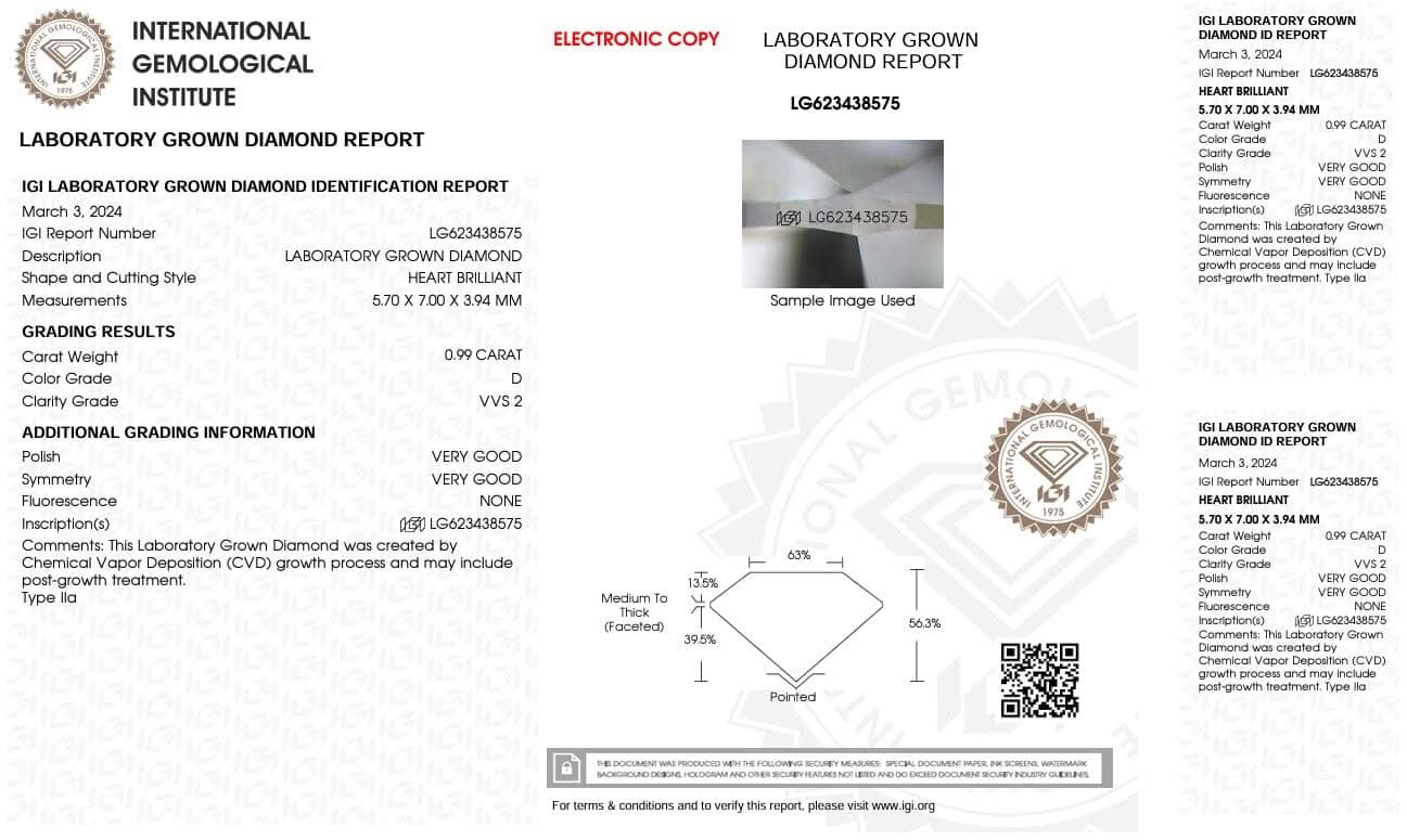 0.99ct D-VVS2 Heart Lab Diamond