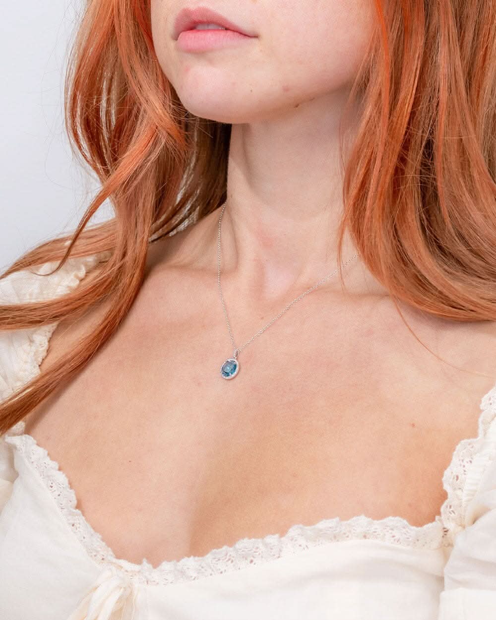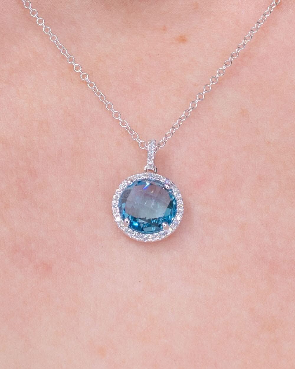 2.25ct Blue Topaz & Diamond Halo Necklace