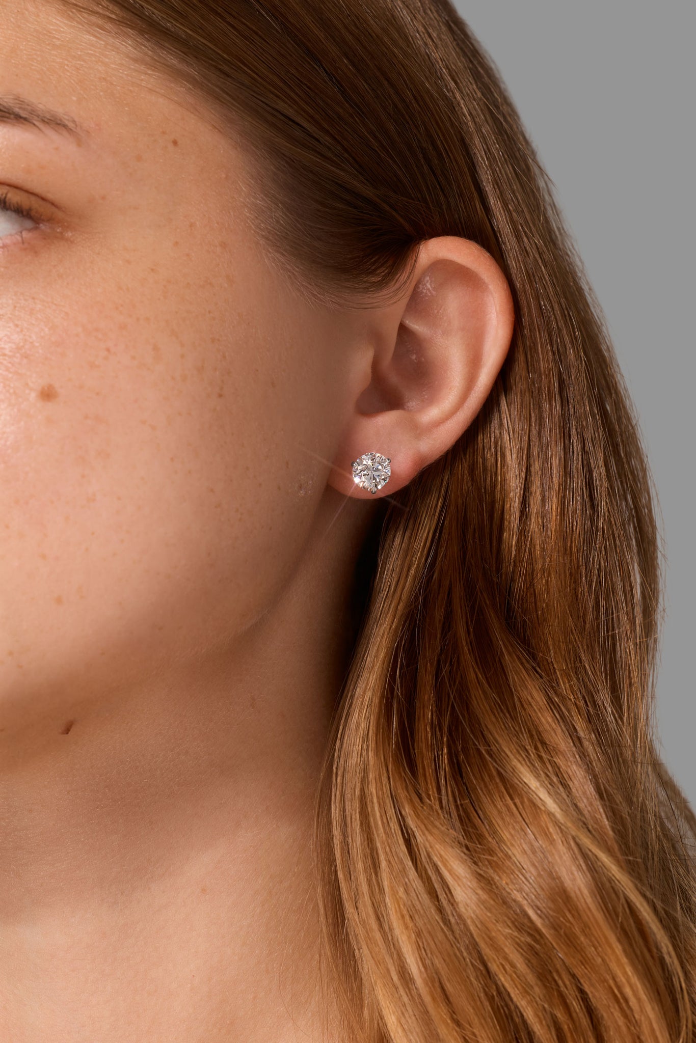 Unmistakable brilliance meets modern comfort. These 3.18ct D VS1 Core Round Lab Diamond Studs feature lab-grown round diamonds in a sleek three-prong martini setting for a clean, floating look. Crafted in solid 14k white gold with secure screw-back posts, they offer timeless elegance with lasting peace of mind.