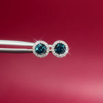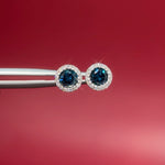 A bold pop of color with timeless sparkle. These studs feature 0.65cttw natural blue diamonds surrounded by a shimmering natural diamond halo totaling 0.10cttw. Crafted in sleek 14k white gold and finished with secure push-back posts, they’re the perfect mix of vibrant and classic.