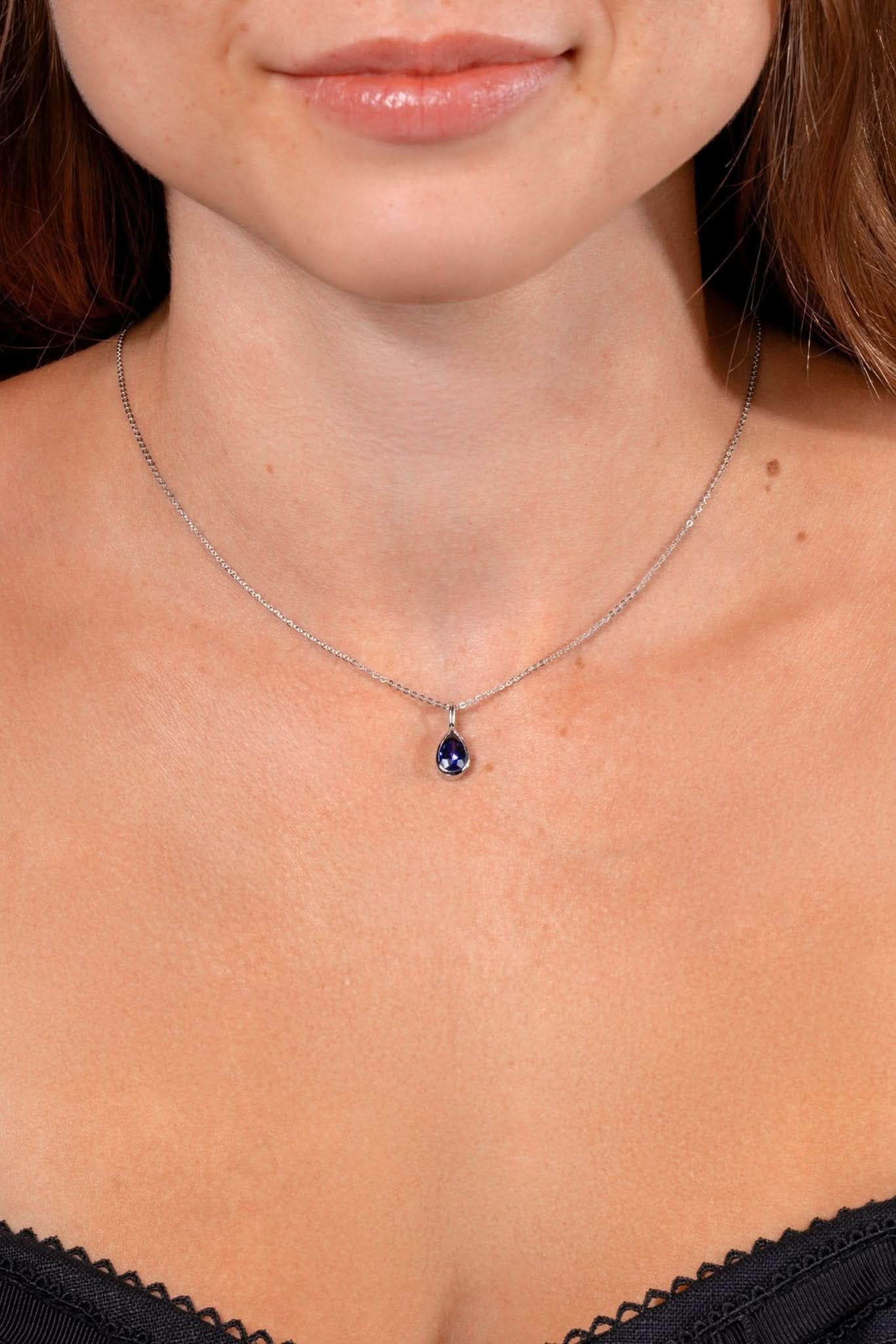 Sleek and elegant, this necklace features a 1.11ct pear-shaped lab sapphire set in a smooth bezel setting crafted from 14k white gold. Finished on a refined 15" chain, it adds a soft pop of blue perfect for everyday wear.