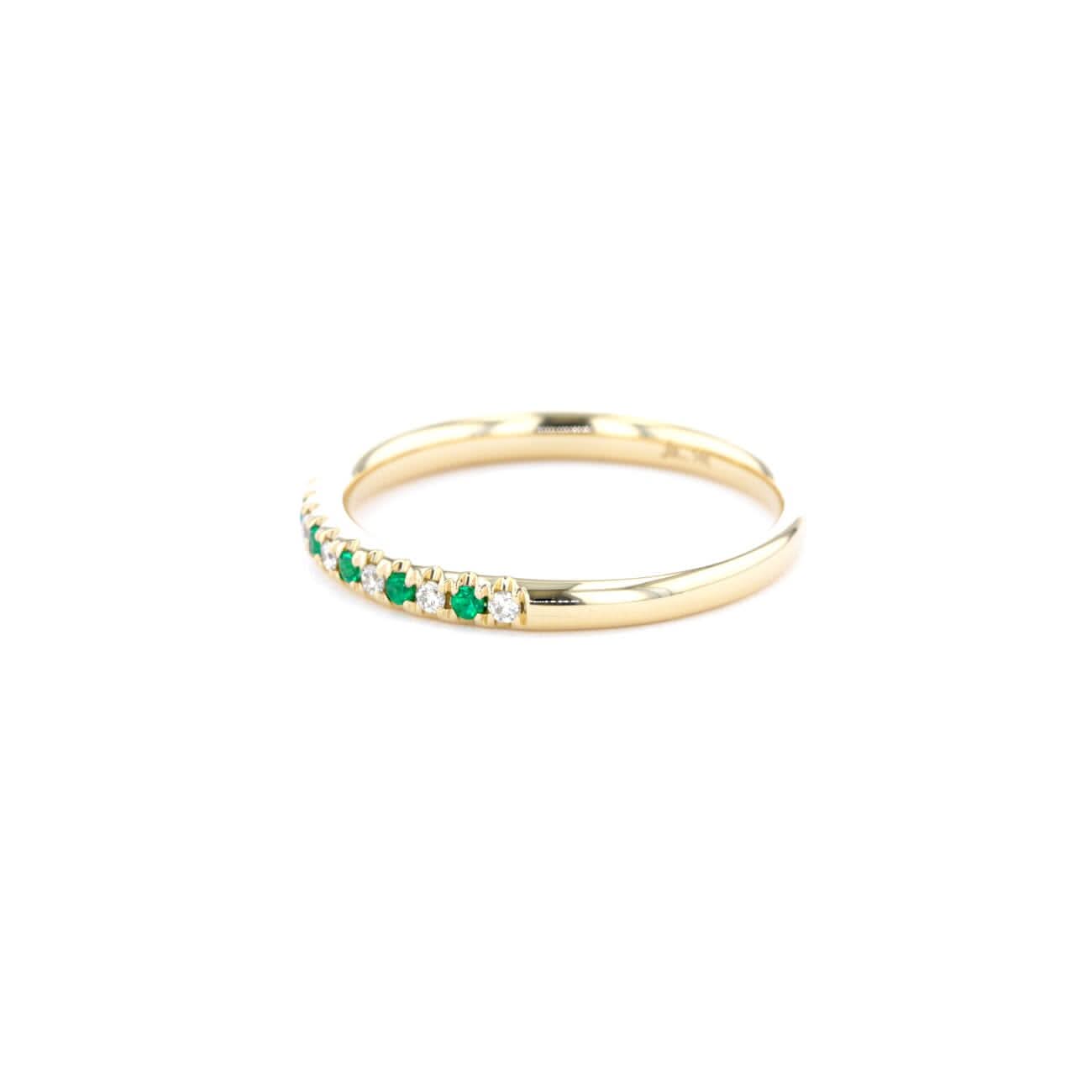 This 2.2mm Pavé Lab Diamond & Lab Emerald Ring is the perfect stackable wedding band for any bride-to-be. The shimmering pavé-set stones are placed along a delicate 2.4mm band, adding vibrant color and sparkle that complement any engagement ring. Each ring is crafted using your choice of high-quality 14k white gold, yellow gold, rose gold, or platinum, and is designed to be durable and long-lasting.