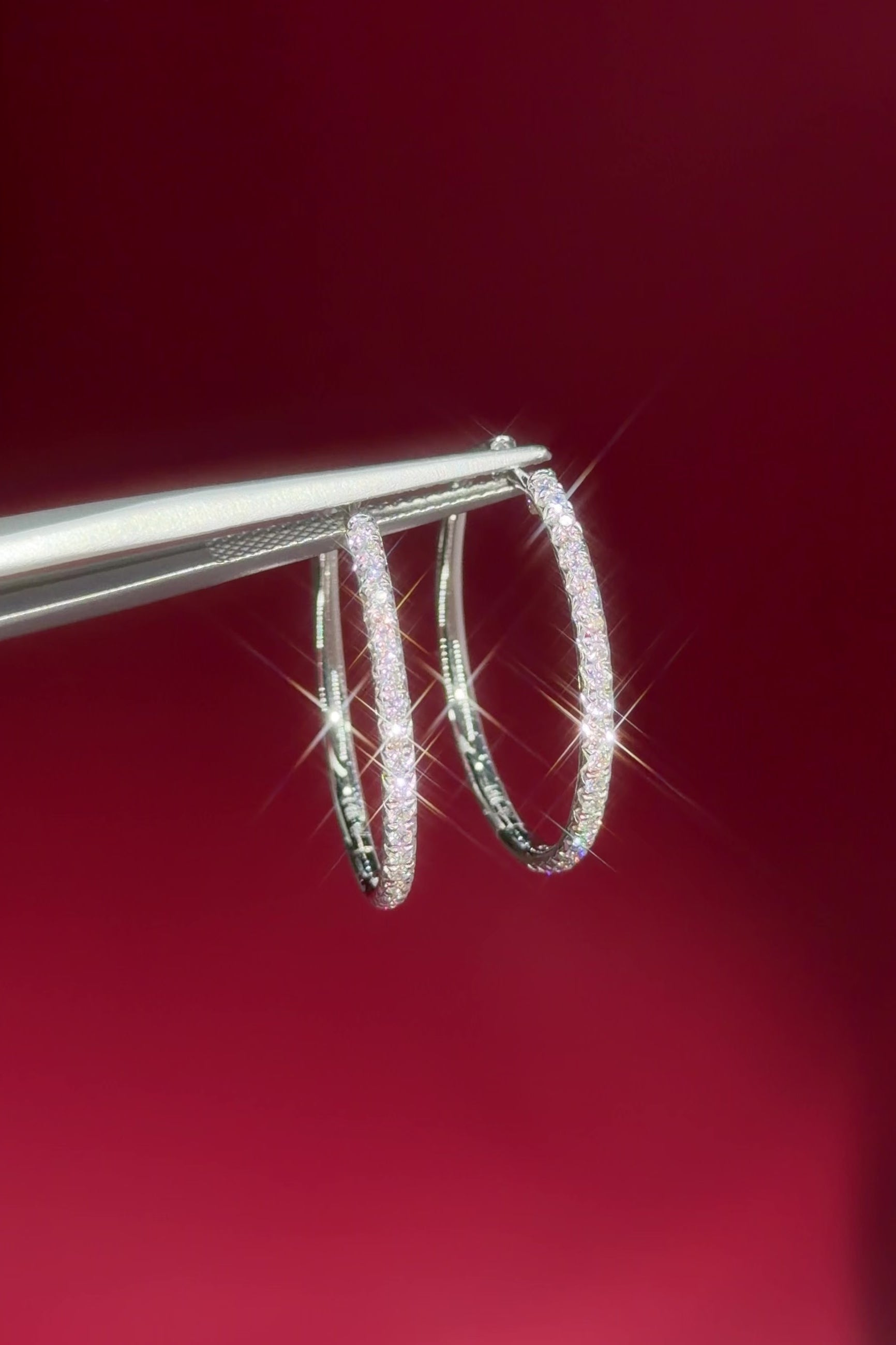 Fine 25mm Pavé Hoops White Gold