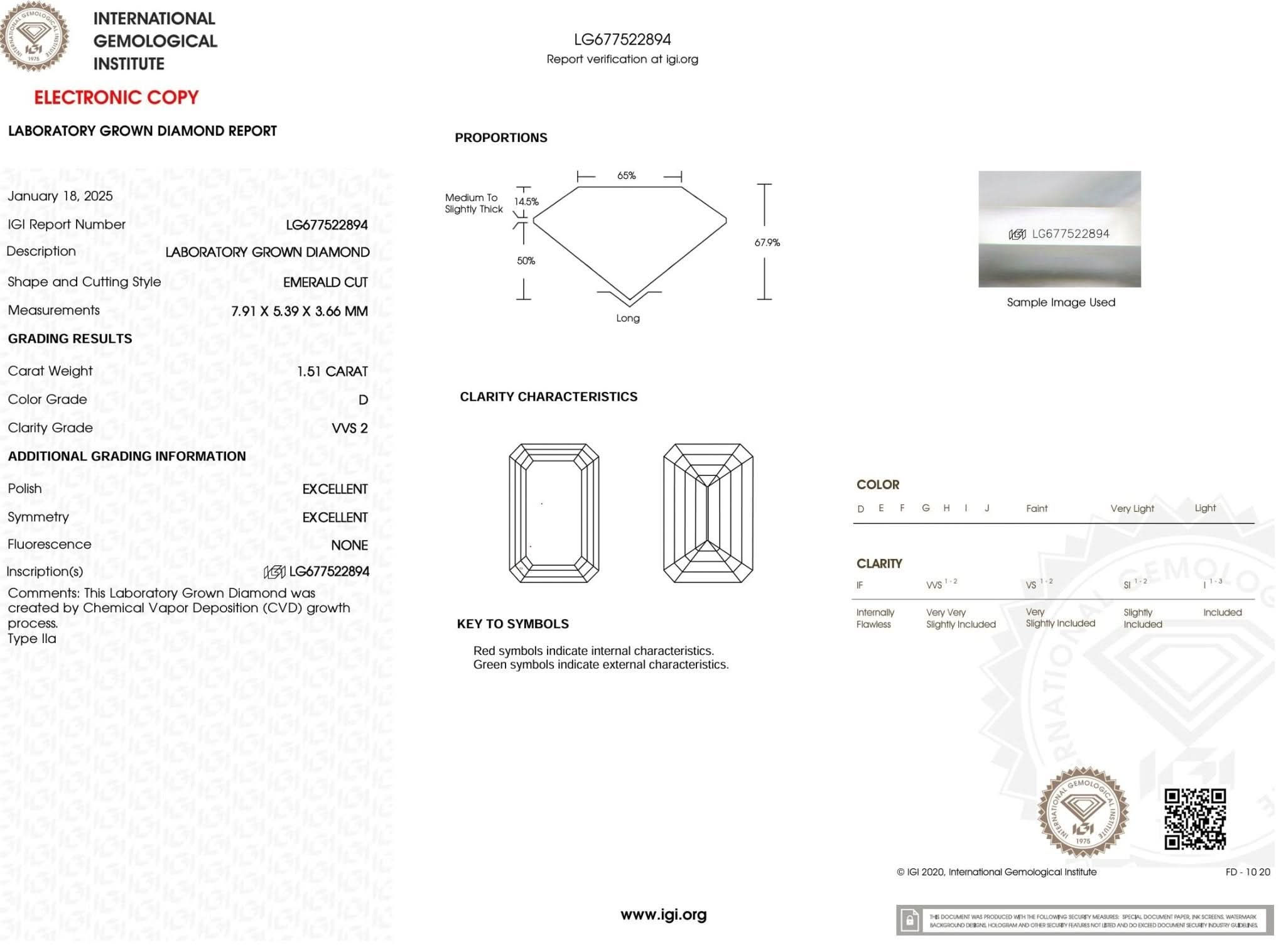 1.51 Carat D-VVS2 Emerald Lab Grown Diamond - IGI (#53939)
