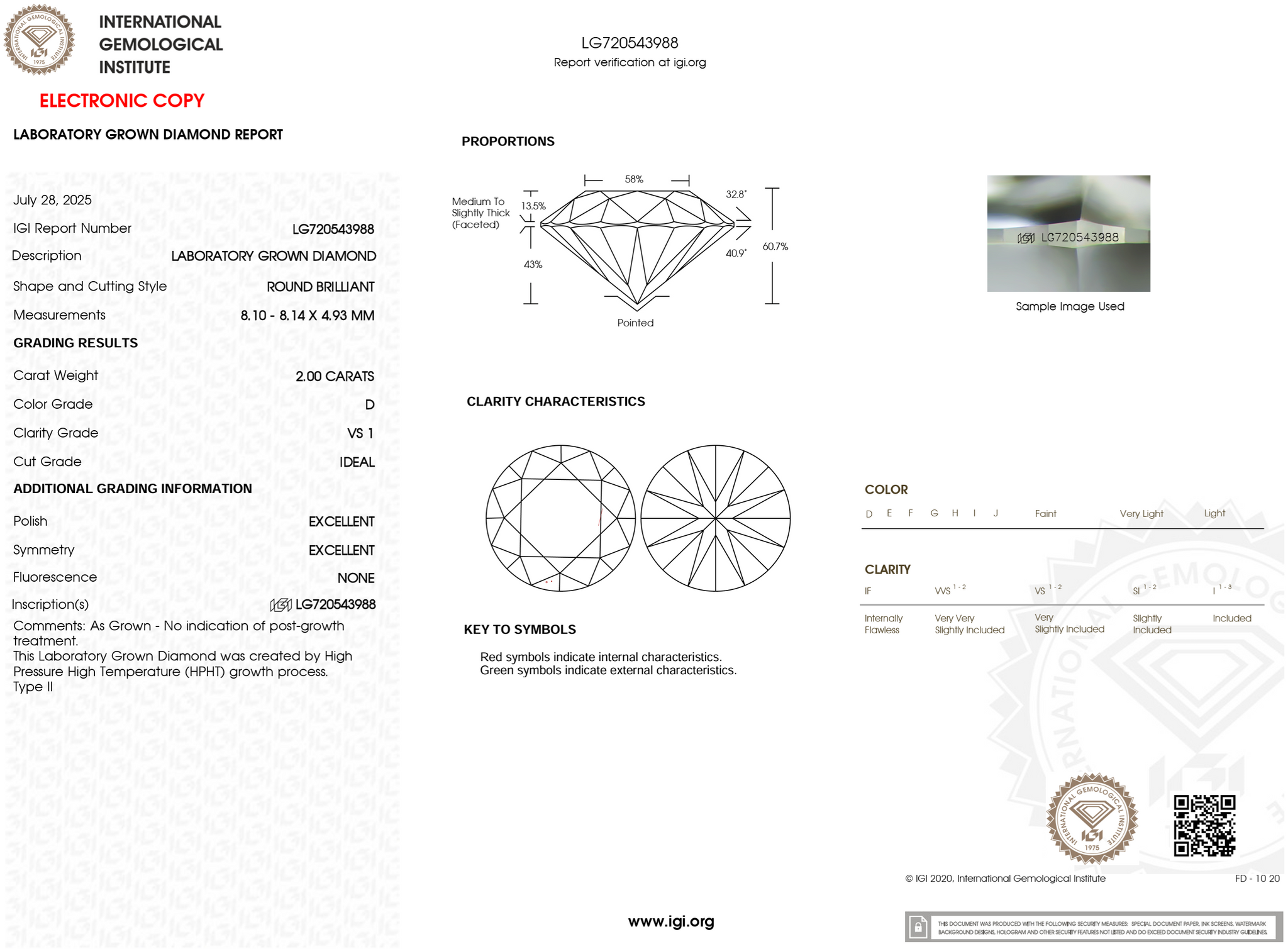 Cut: Ideal Polish: Excellent Symmetry: Excellent