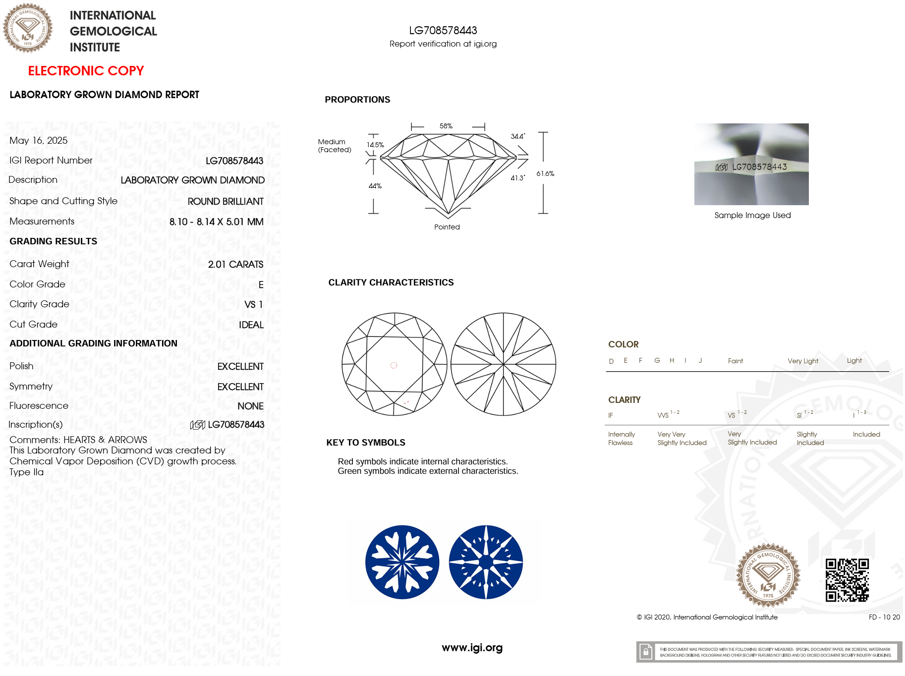 Cut: Ideal Polish: Excellent Symmetry: Excellent