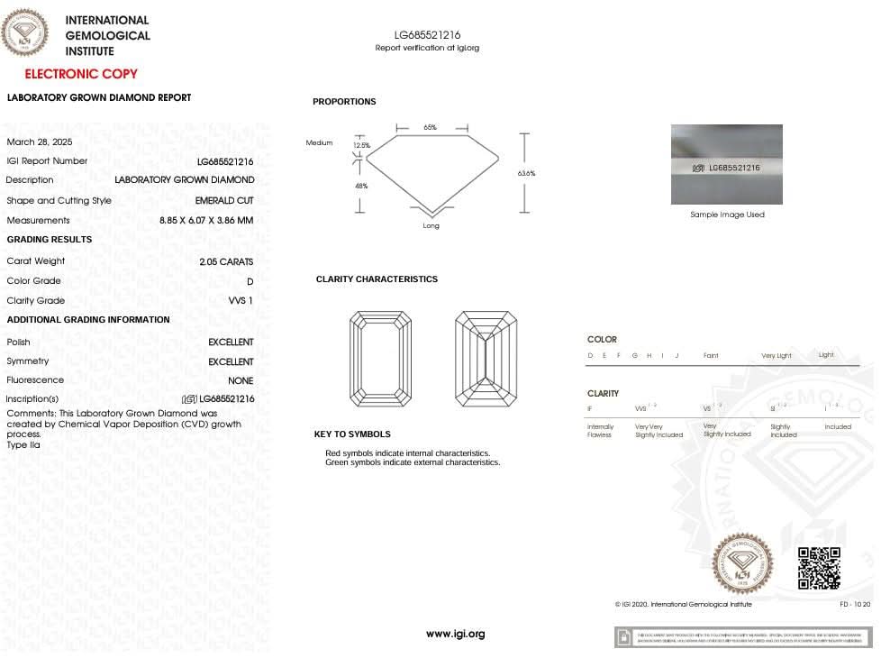 2.05 Carat D-VVS1 Emerald Lab Grown Diamond - IGI (#53540)