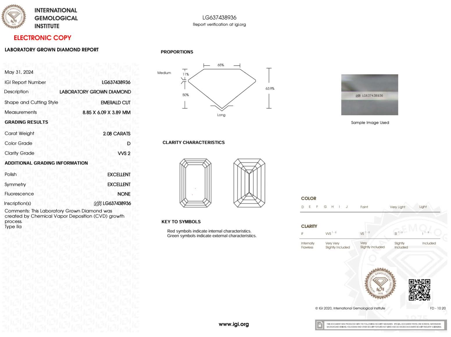 2.08 Carat D-VVS2 Emerald Lab Grown Diamond - IGI (#50029)