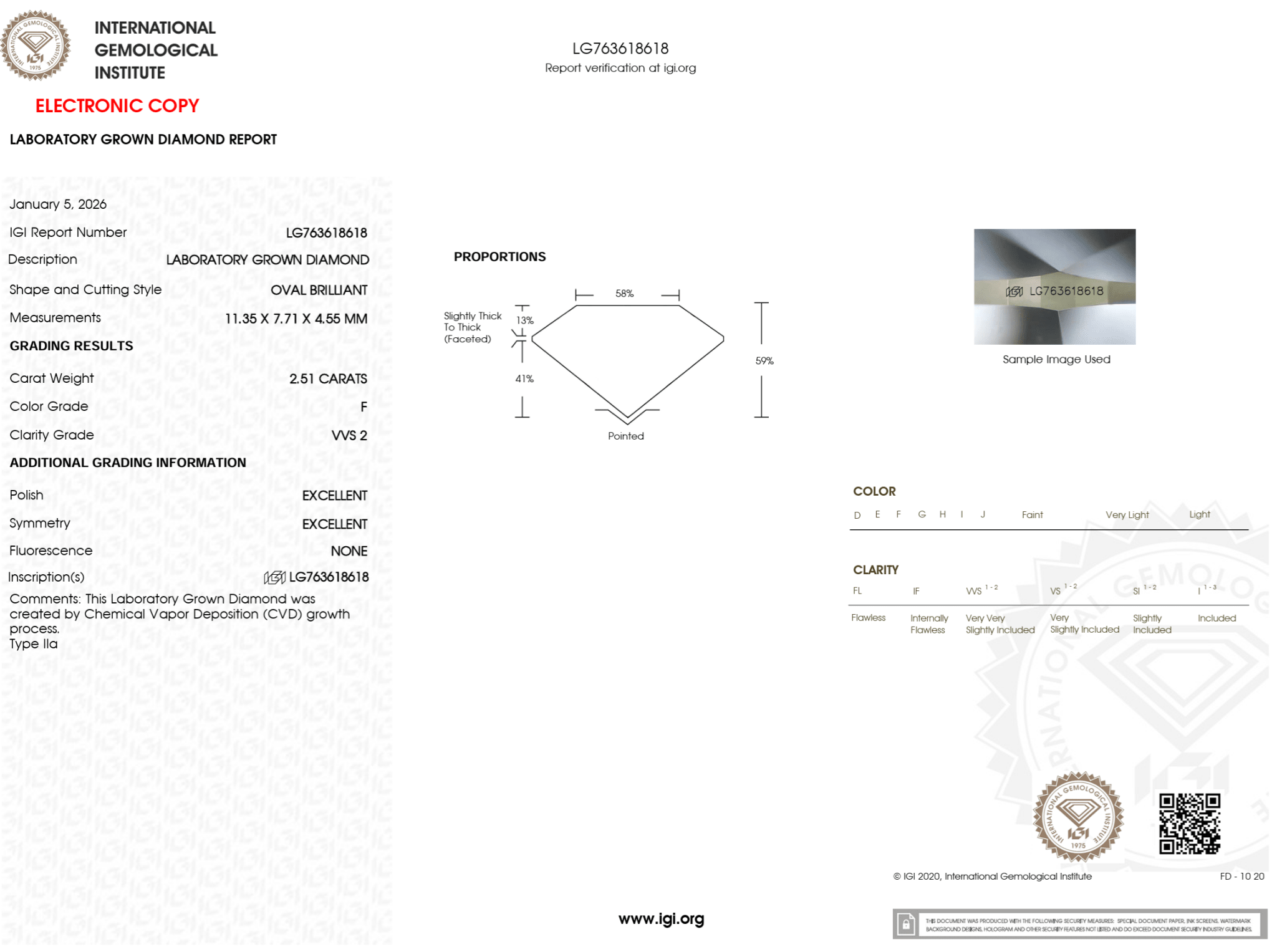 2.51 Carat F-VVS2 Oval Lab Grown Diamond - IGI (#124034)