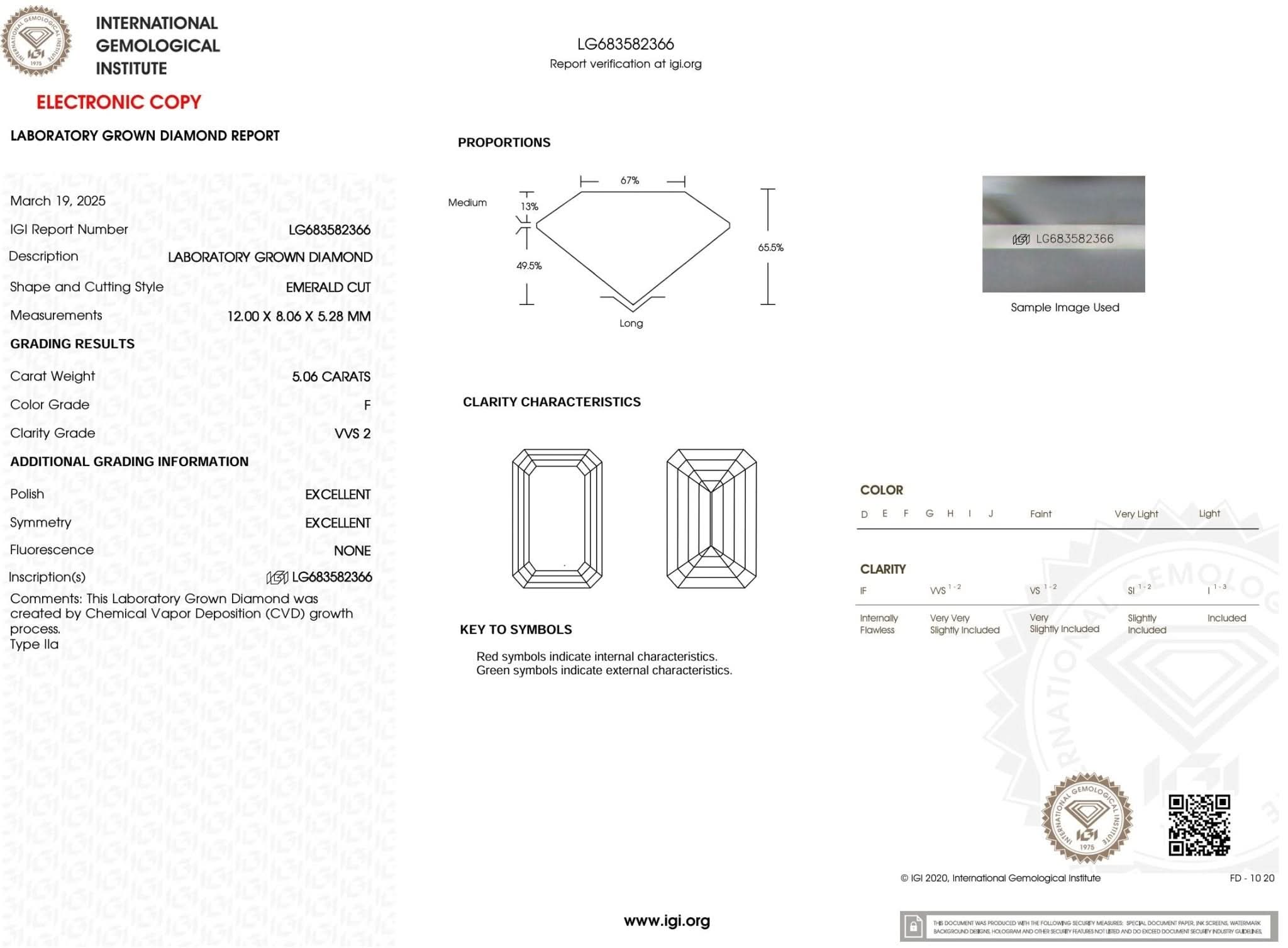 5.06 Carat F-VVS2 Emerald Lab Grown Diamond - IGI (#54303)