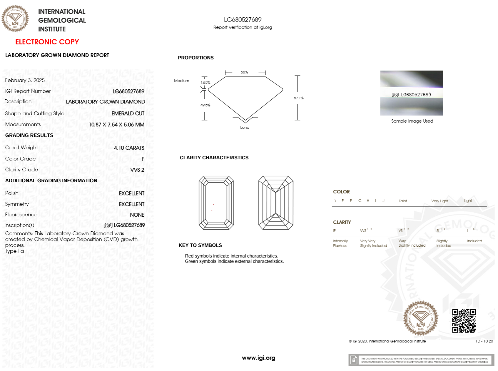 4.10 Carat F-VVS2 Emerald Lab Grown Diamond - IGI (#122973)