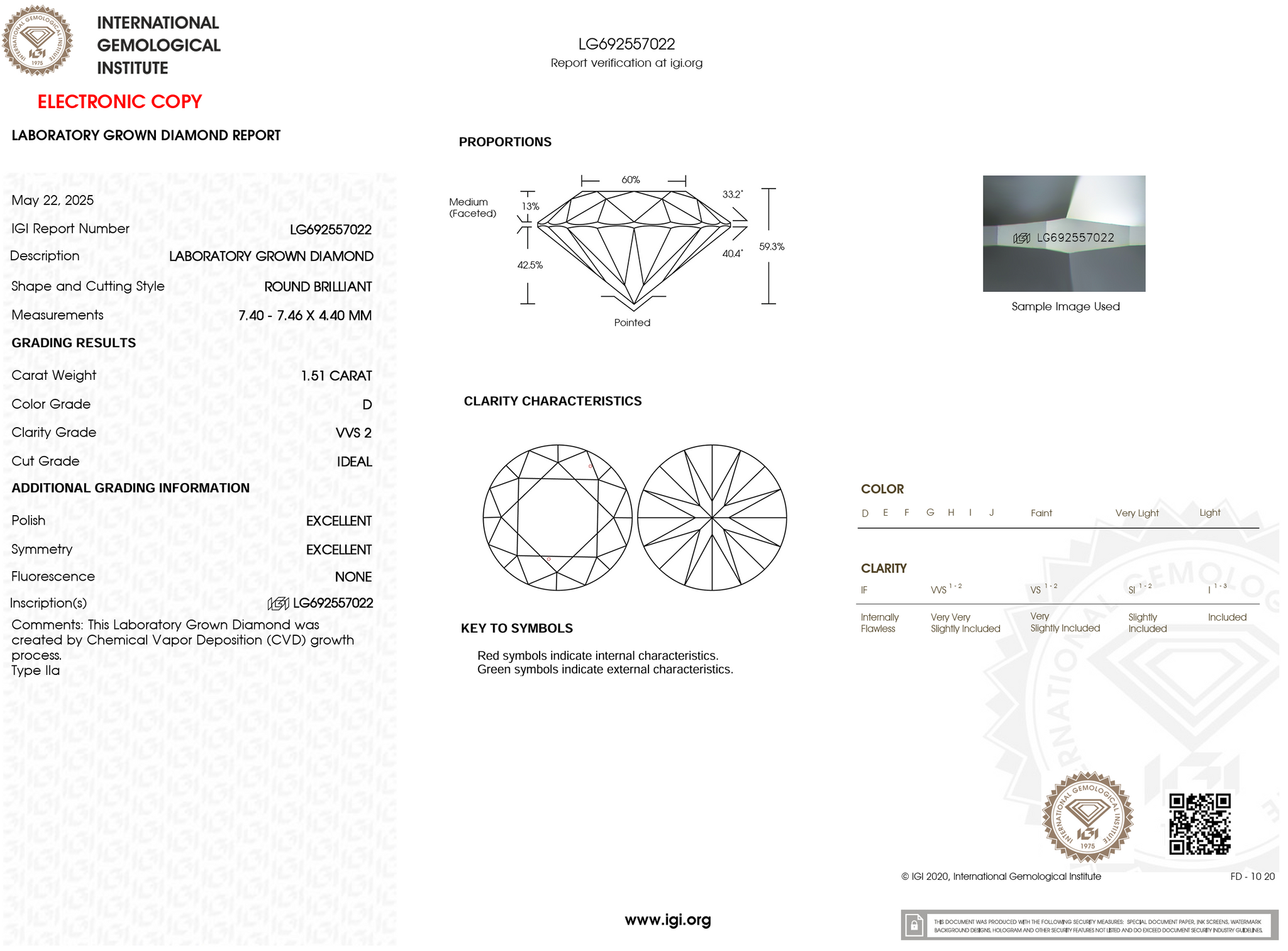 Cut: Ideal Polish: Excellent Symmetry: Excellent
