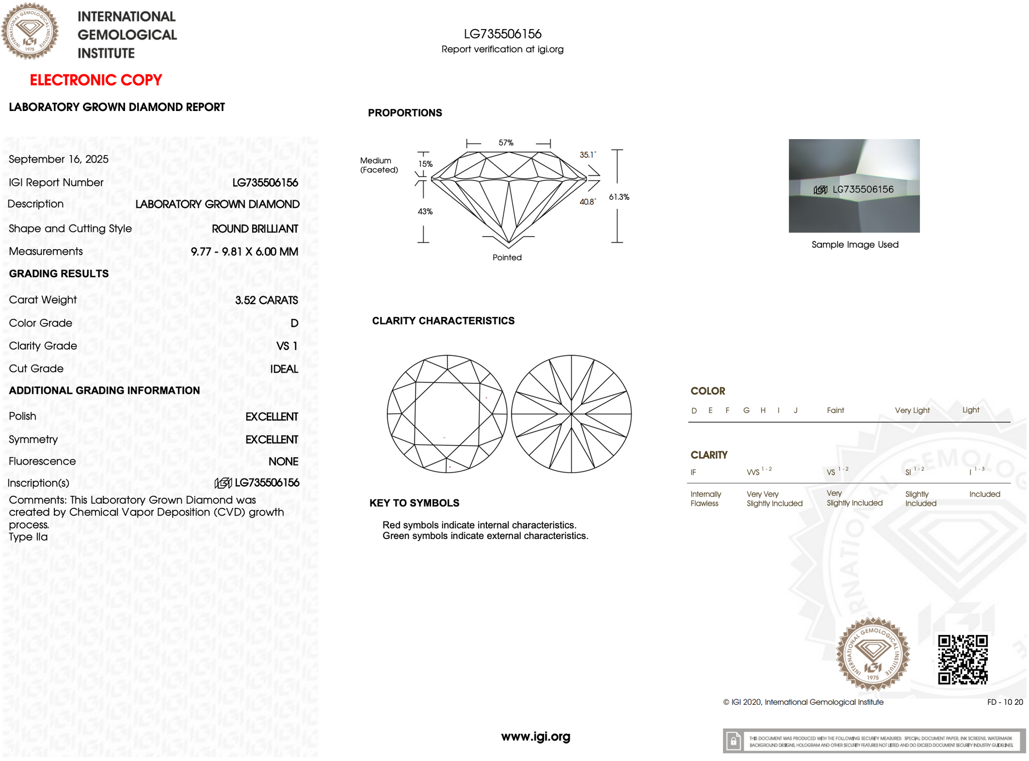 Cut: Ideal Polish: Excellent Symmetry: Excellent
