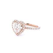 The Leilani features a classic pavé band with a delicate seamless classic halo, traditional-style body, and diamond lotus petal prongs.
