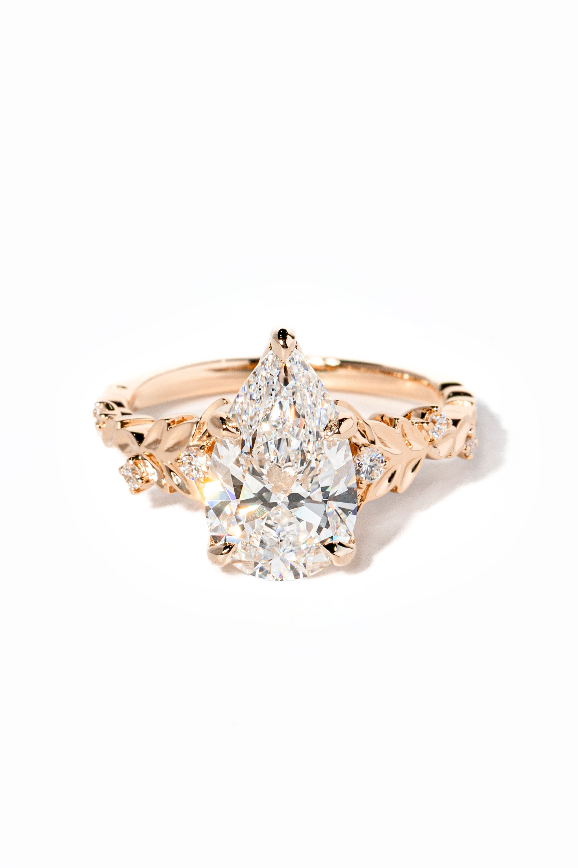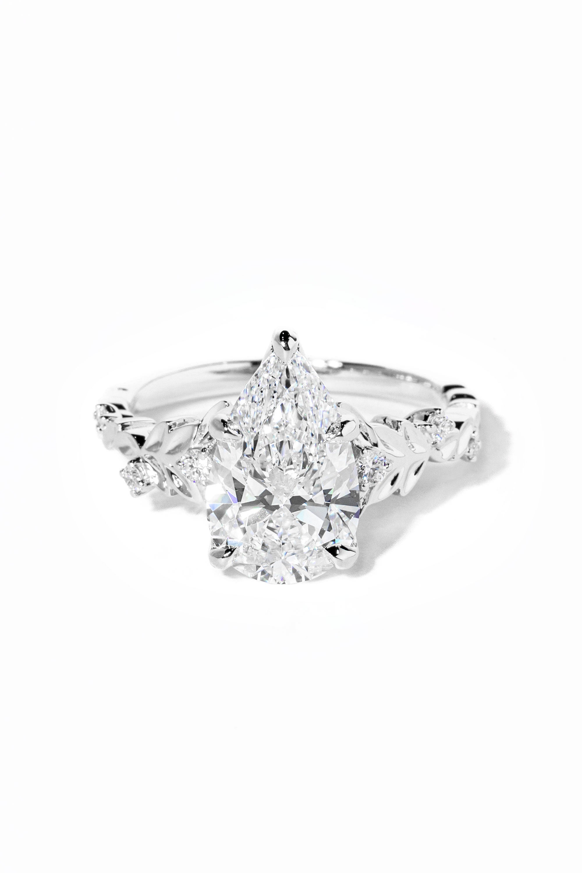 The Arwen exudes a nature-inspired aesthetic with delicate leaves gracefully climbing the band, adorned with sparkling diamonds scattered throughout.