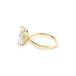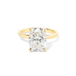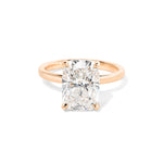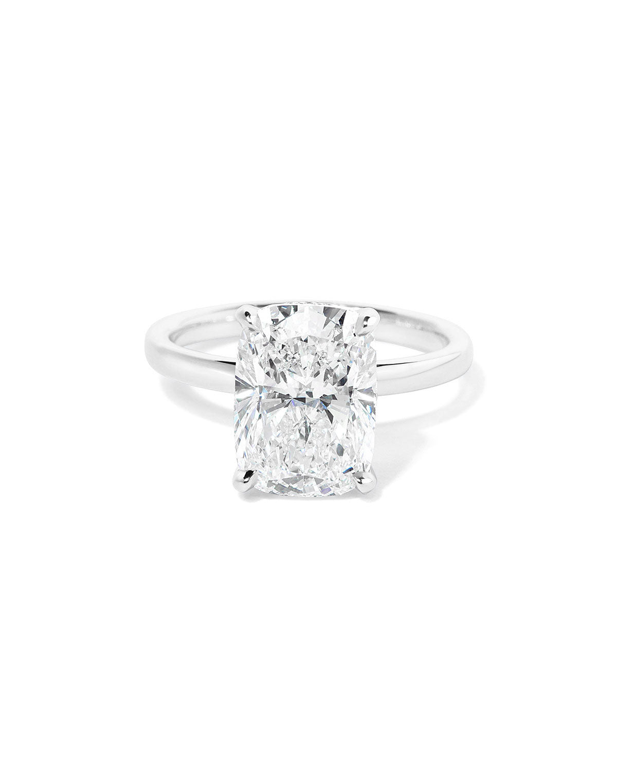The Kayla features a high polish comfort fit band with a hidden inner under halo.