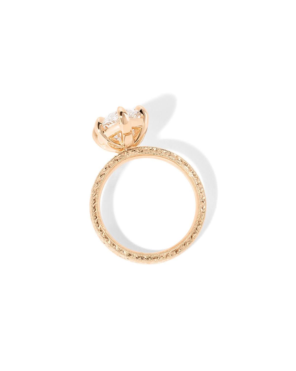 With no side stones, this solitaire design highlights the beauty of the center stone while showcasing exquisite craftsmanship and vintage-inspired detailing.