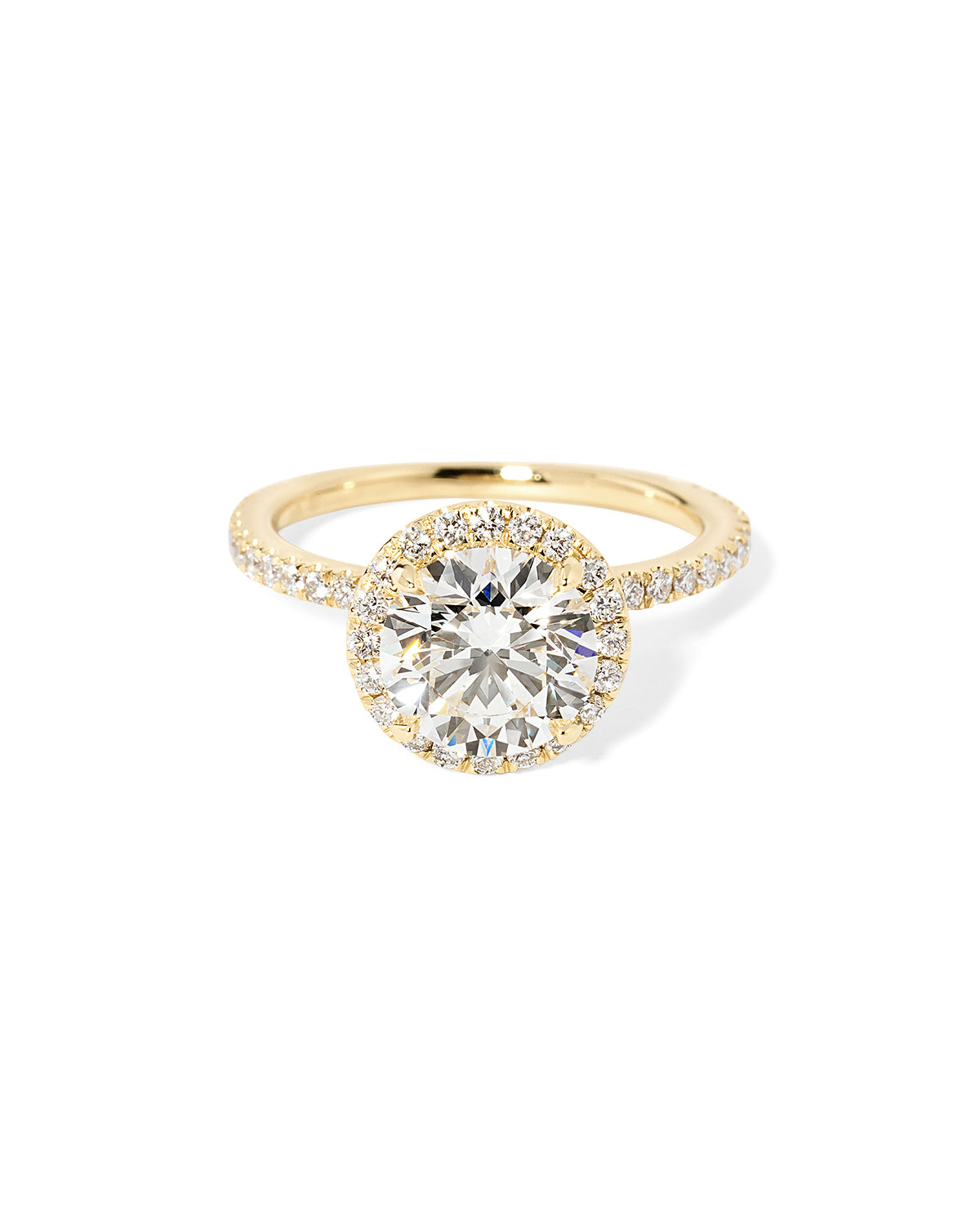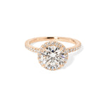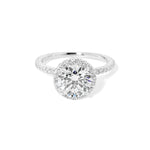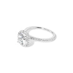 The Angela is a beautifully balanced design that blends classic elegance with refined detail. It features a classic pavé band paired with a delicate, seamless halo that softly enhances the center stone’s presence. Finished with a traditional-style body and sparkling diamond prongs, Angela offers timeless sophistication with just the right touch of glamour.