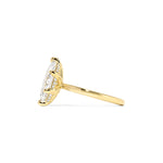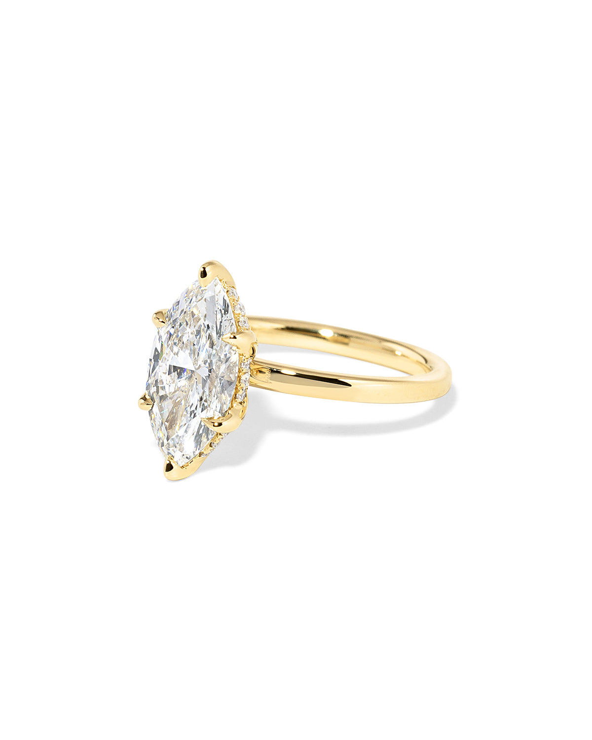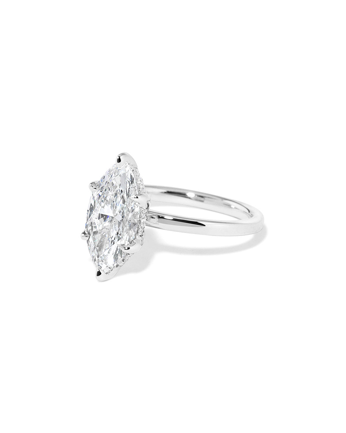 The Kayla features a high polish comfort fit band with a hidden inner under halo.