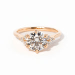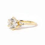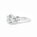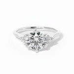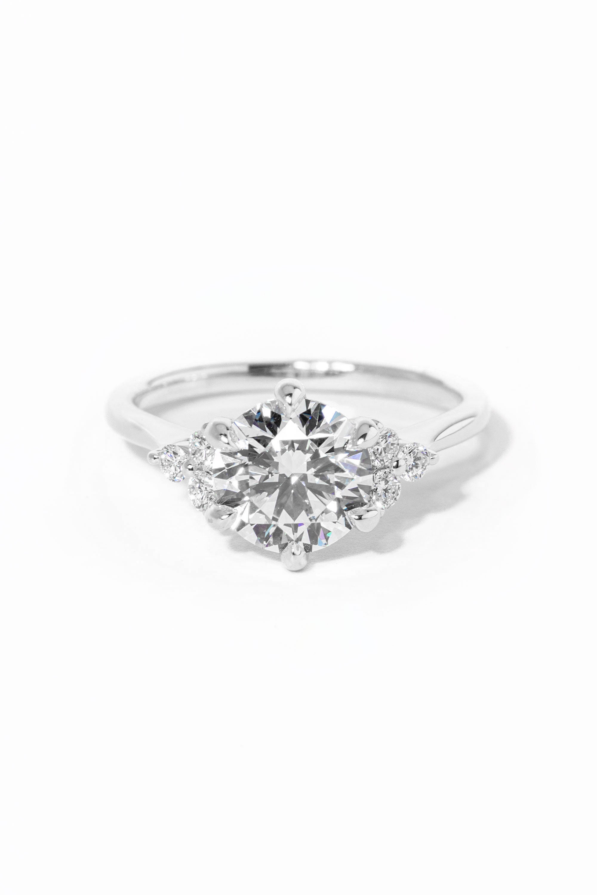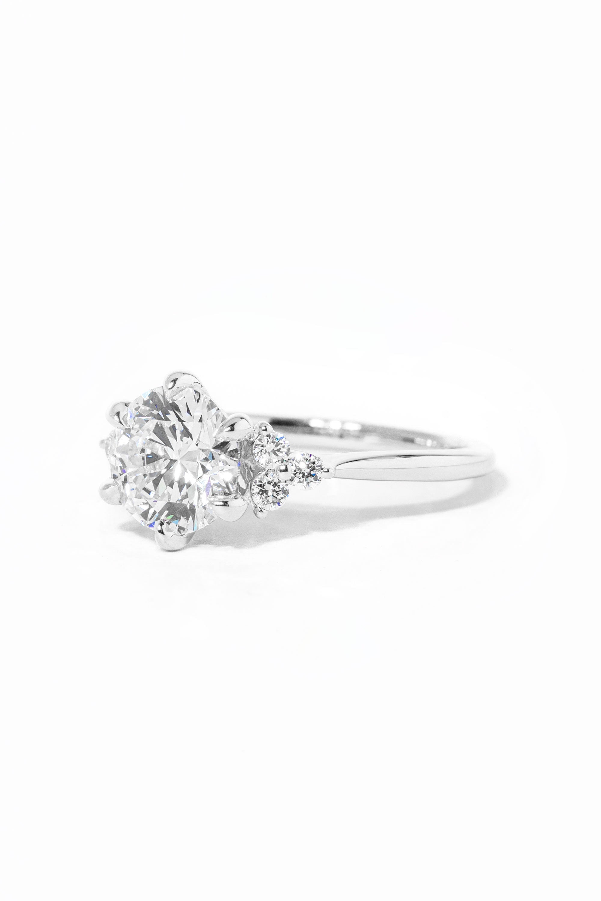 The Lindsey features a classic high polish band with a trio of diamond side stones to perfectly accent your selected center stone.