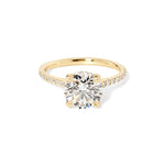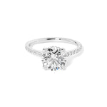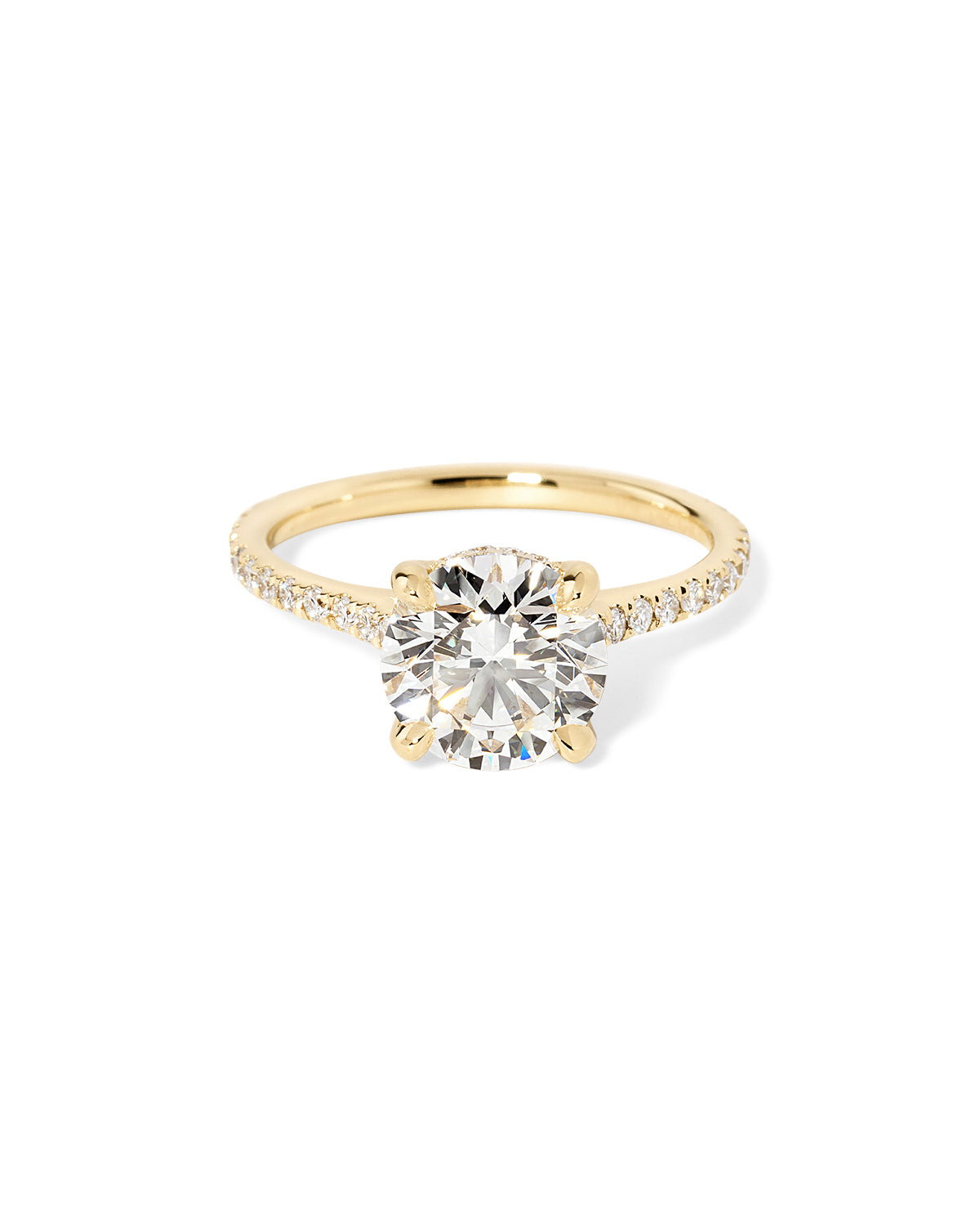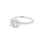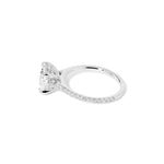 The Michelle is a timeless, elevated design made for effortless sparkle. It features a classic pavé band that adds brilliance along the finger, paired with a graceful cathedral-style body that lifts and frames the center stone beautifully. A hidden inner under-halo adds a subtle touch of detail beneath the center—perfect for extra dimension without overpowering the look.