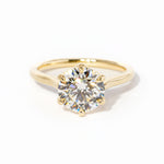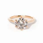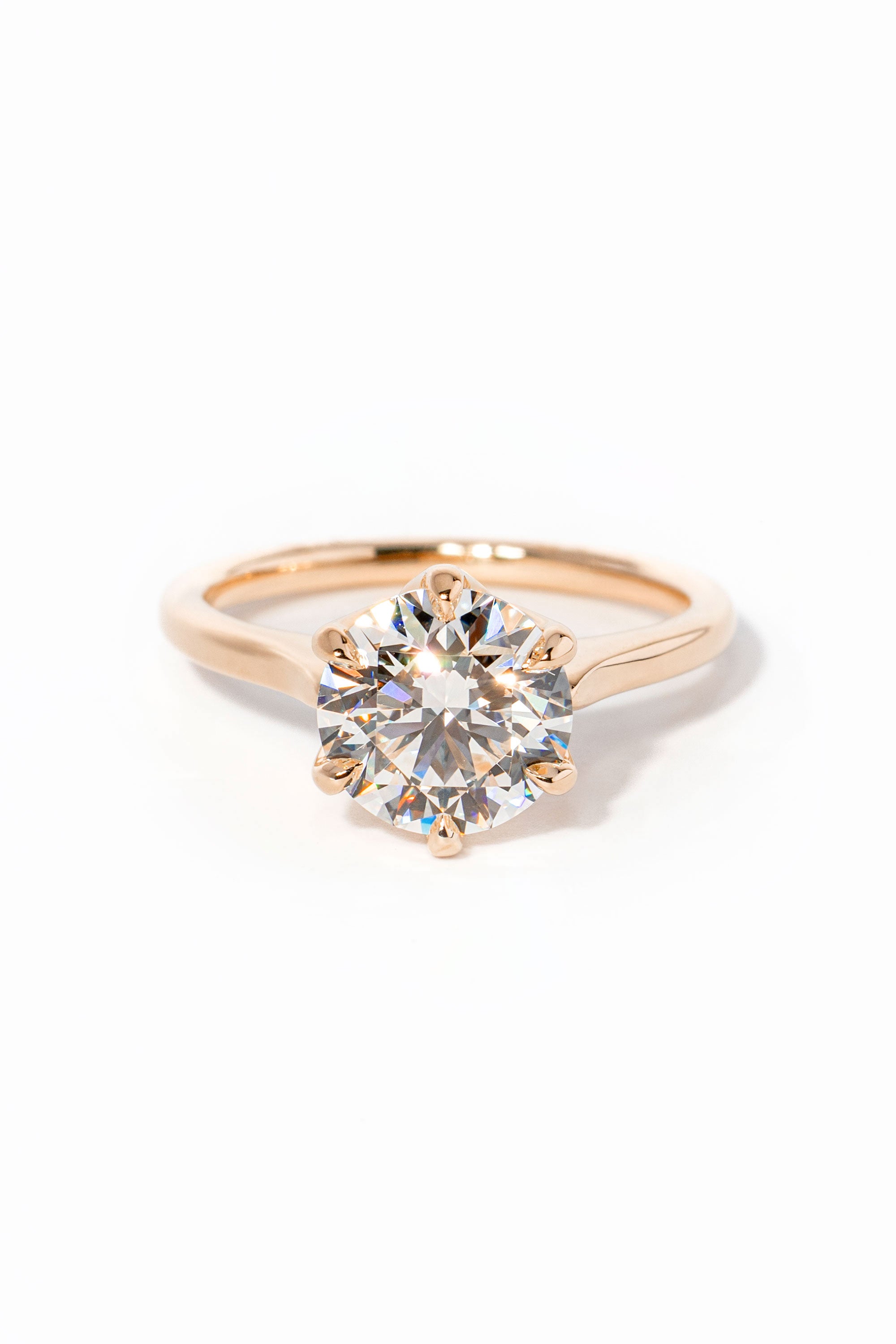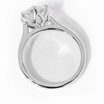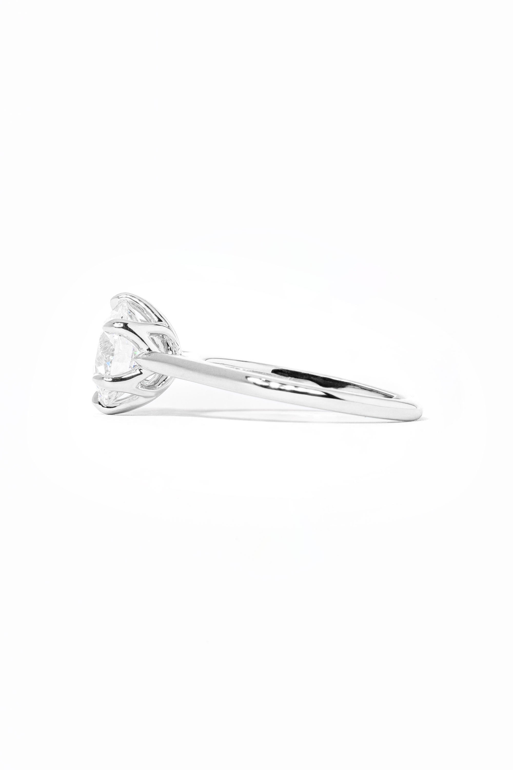 The Victoria features a high polish comfort fit band and a cathedral-style body with high polish lotus petal prongs.