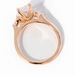 The Gracie features a high polish comfort fit band with two baby pear diamond side stones.