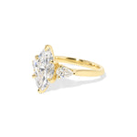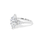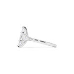 The Gracie features a high polish comfort fit band with two 5x3mm lab pear diamond side stones.gracie