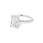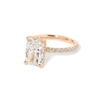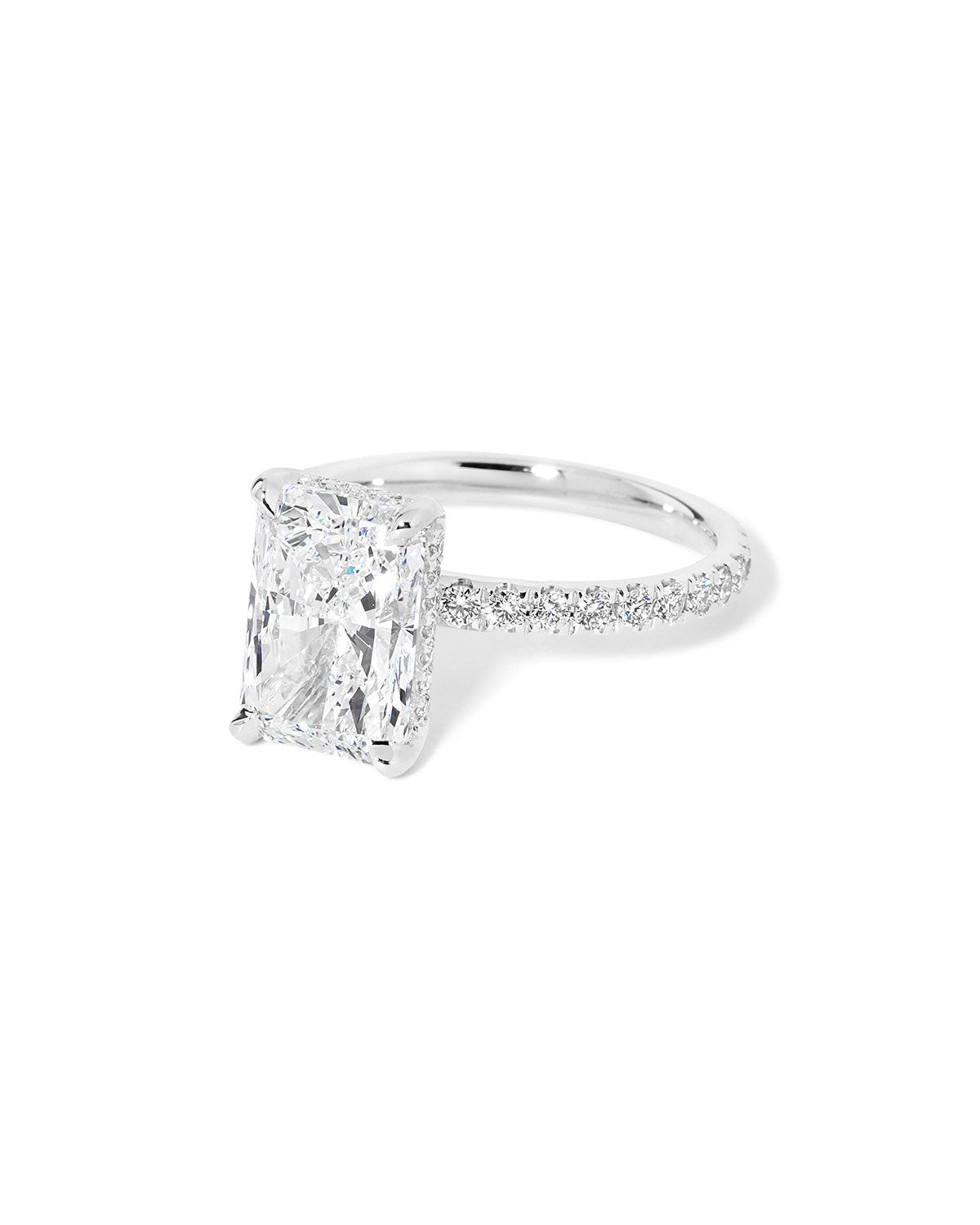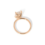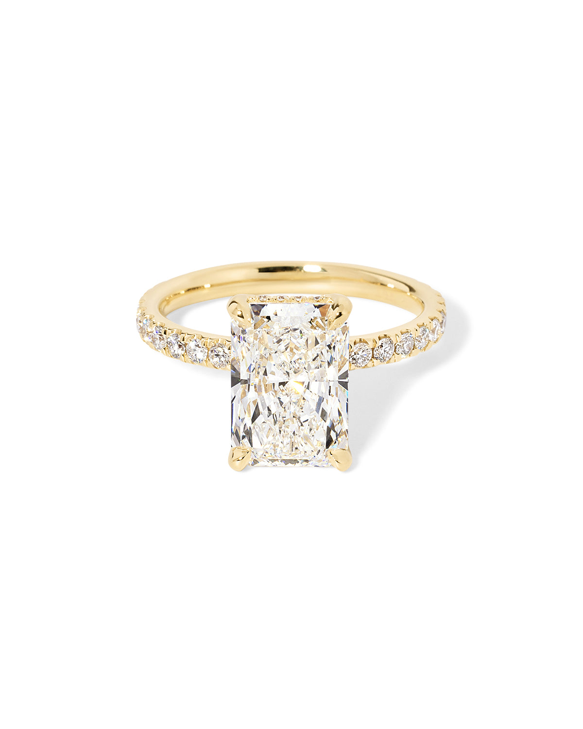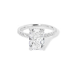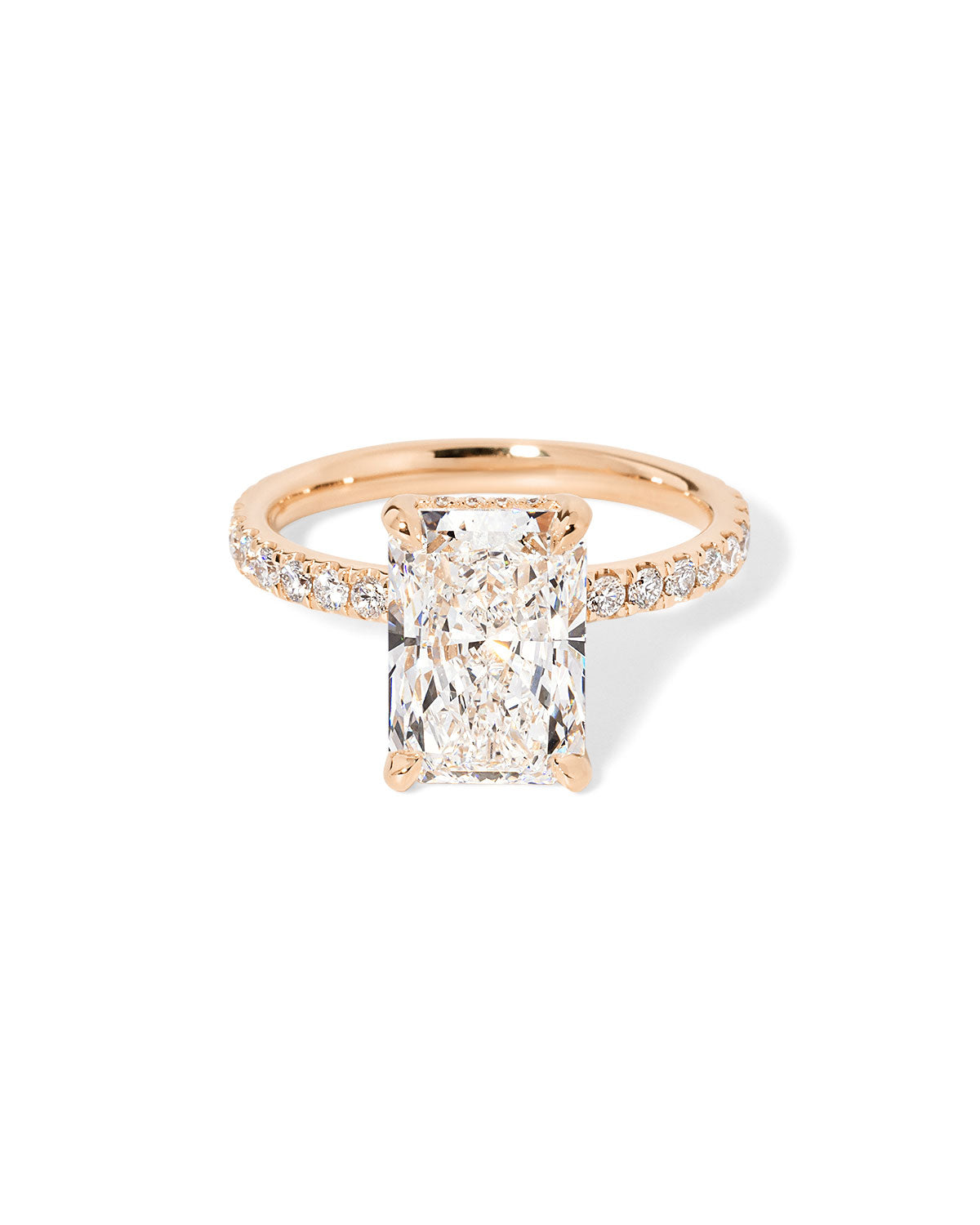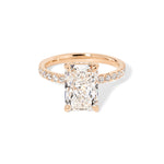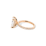 The Kayla is a timeless design with a touch of hidden sparkle. It features a classic pavé band for brilliant shine along the finger, paired with a hidden inner under-halo that adds delicate detail beneath the center stone—beautiful from every angle.
