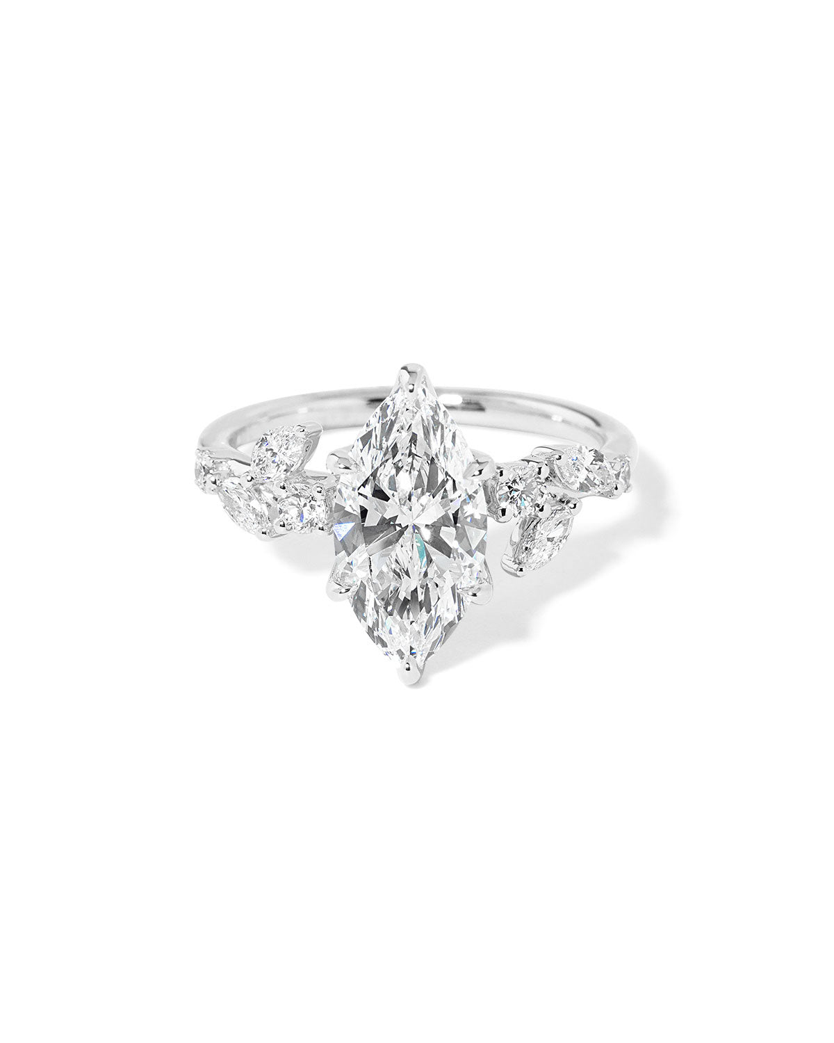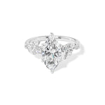 Add a touch of whimsy to your look with our Sage Marquise ring, featuring stunning marquise and round diamond side stones. Embrace the unconventional and stand out from the crowd with this unique design.