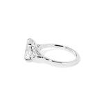 The Meghan features a tapered high polish comfort fit band with three high polish baskets set as low as possible and two baby round diamond side stones.