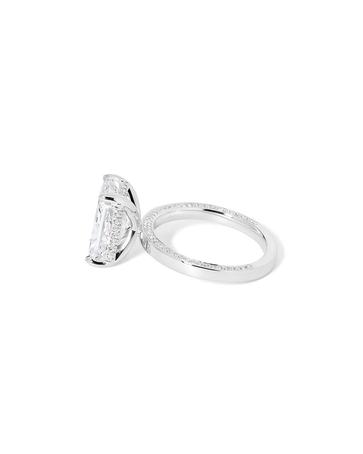 Mini radiant lab diamonds are set northwest with two micro prongs to give you the look of floating oval lab diamonds. This band pairs beautifully with a matching radiant engagem...