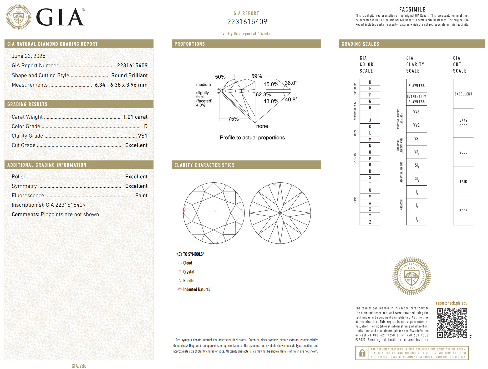 Cut: Excellent Polish: Excellent Symmetry: Excellent