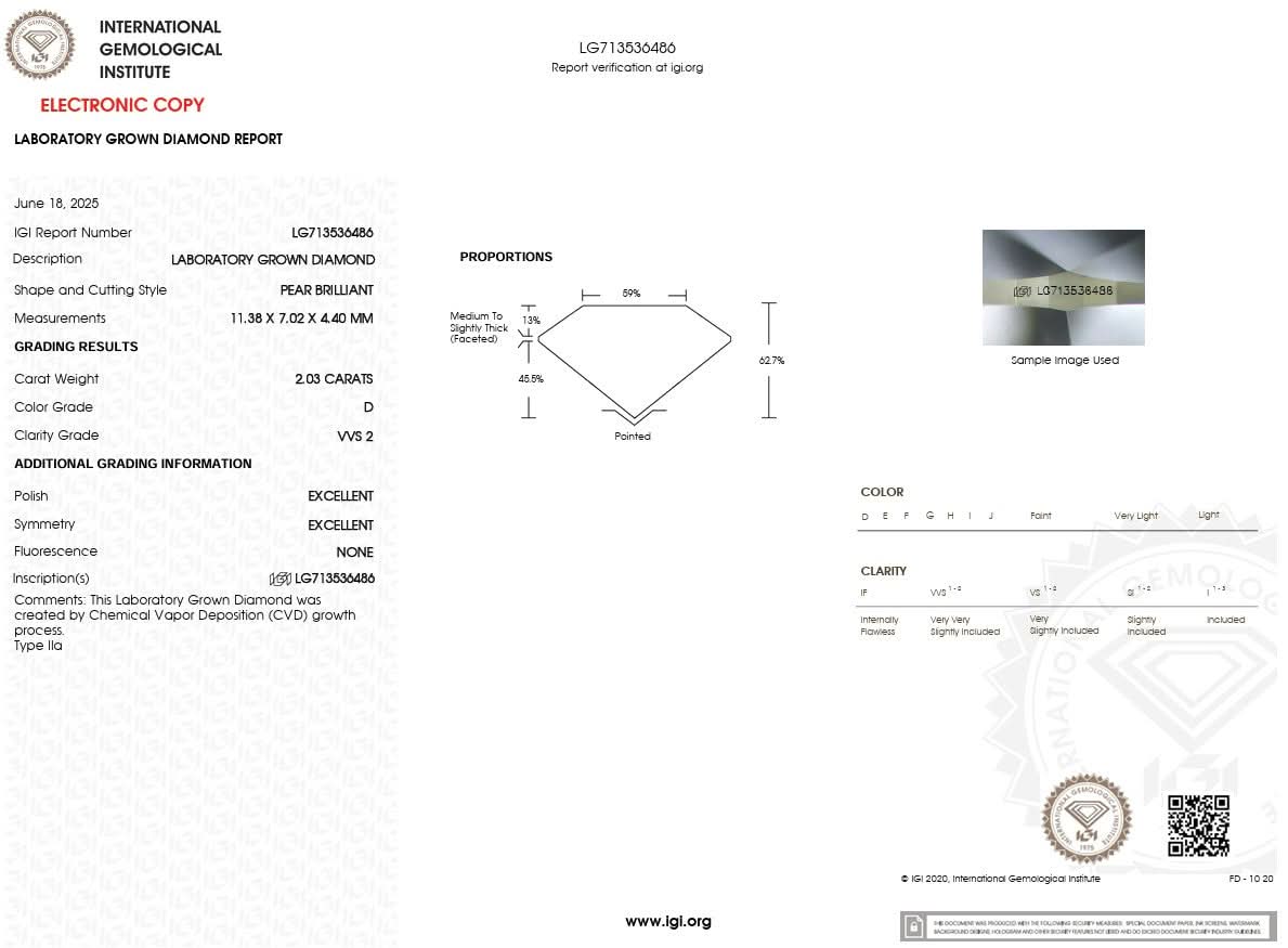 2.03ct D-VVS2 Pear Lab Diamond Ariel