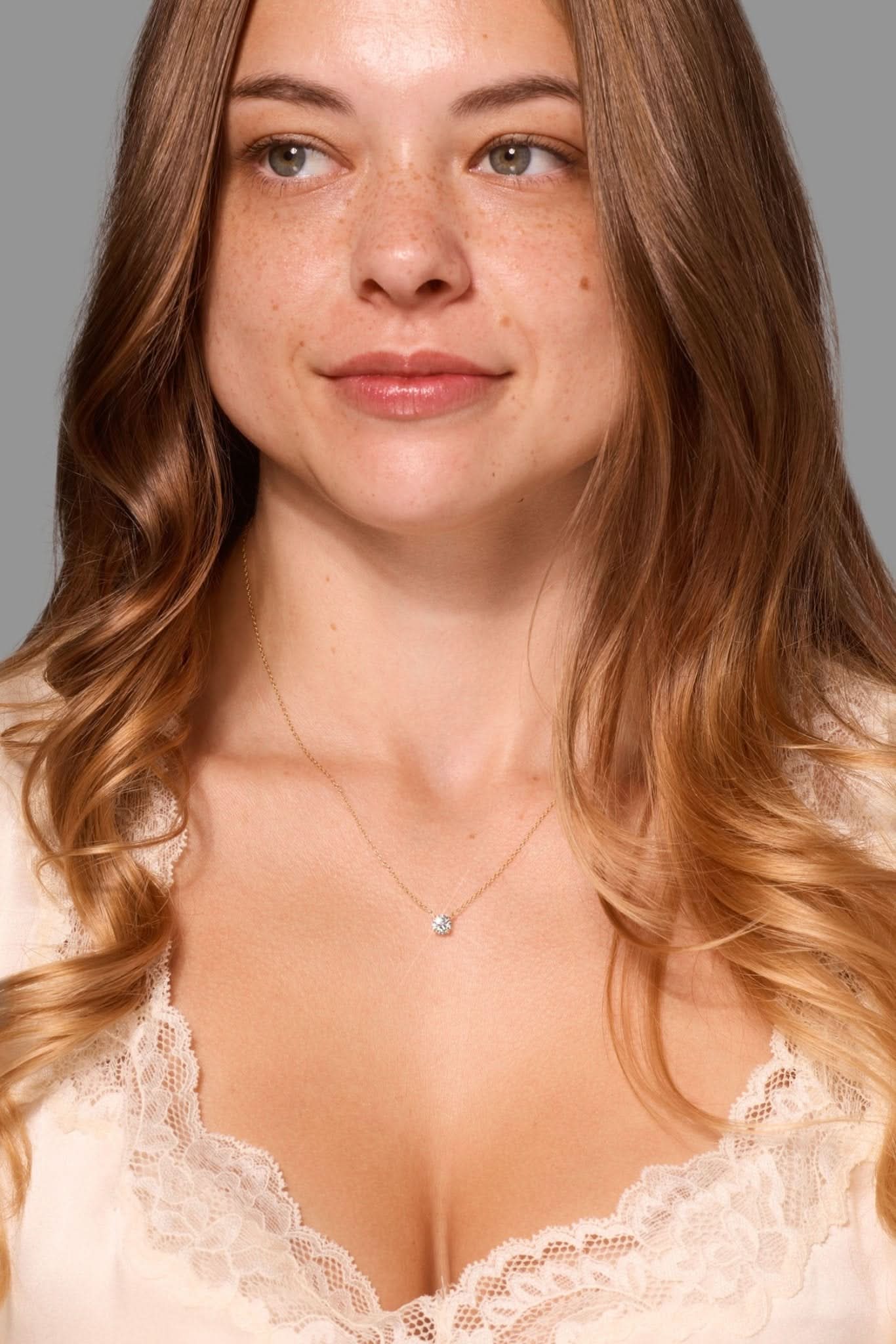 Elegant and timeless, the Core Round Solitaire Necklace is crafted for effortless everyday wear. Featuring a 0.53ct D VVS1 lab-grown round diamond in a sleek fixed setting, this pendant is soldered directly to the chain for a seamless look and long-lasting durability. Made in solid 14k yellow gold, it’s a delicate yet dazzling essential for any jewelry collection.