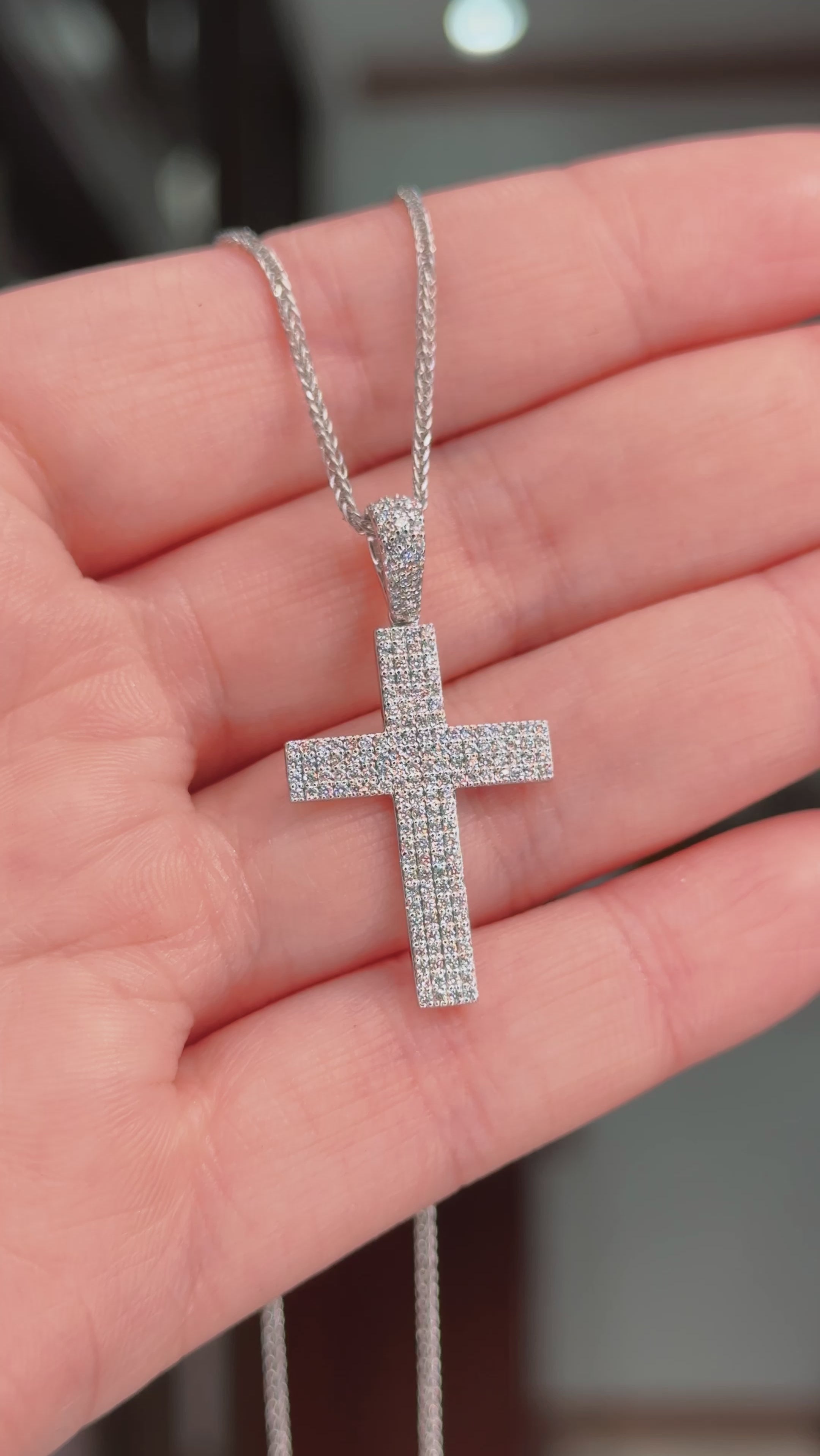 0.56ct Diamond Cross 14k White Gold Chain Necklace